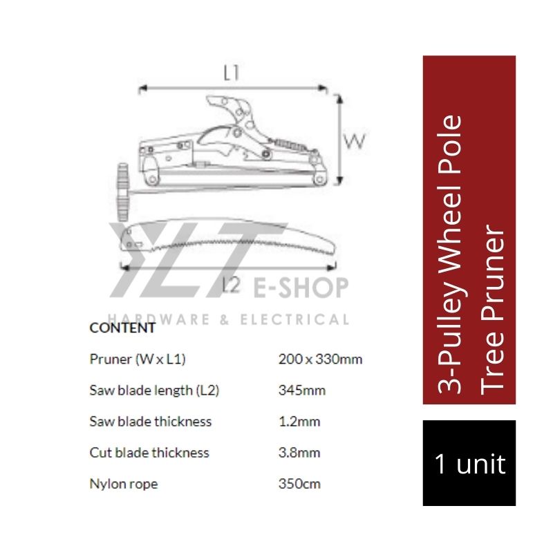 3-Pulley Wheel Pole Tree Pruner / Trimming Tree /Saw Tree / Rambutan Cutter gergaji tangkai pokok buah rambutan buah
