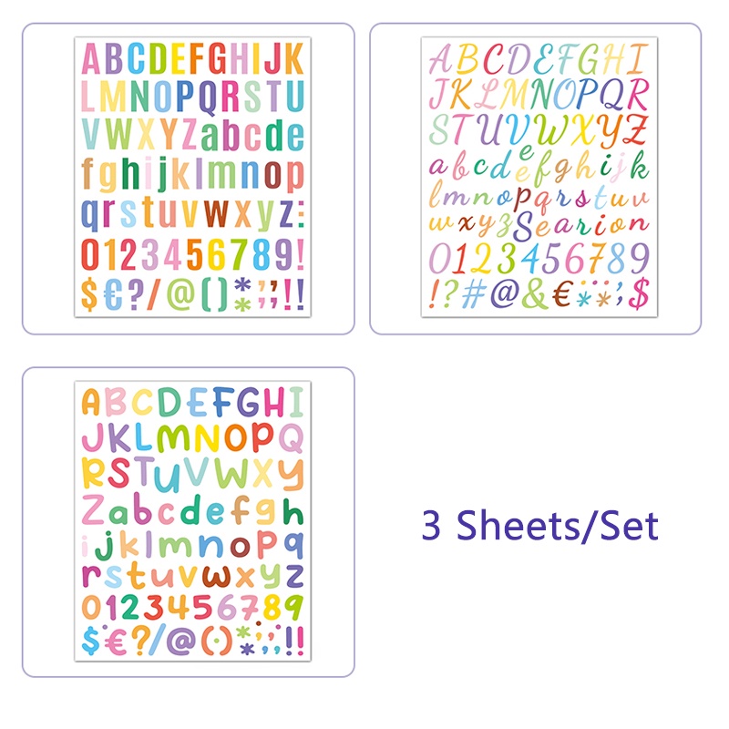 3 Sheets Cute Colorful English Alphabet Number Stickers Scrapbook Deco DIY Material Alphanumeric Decals Set