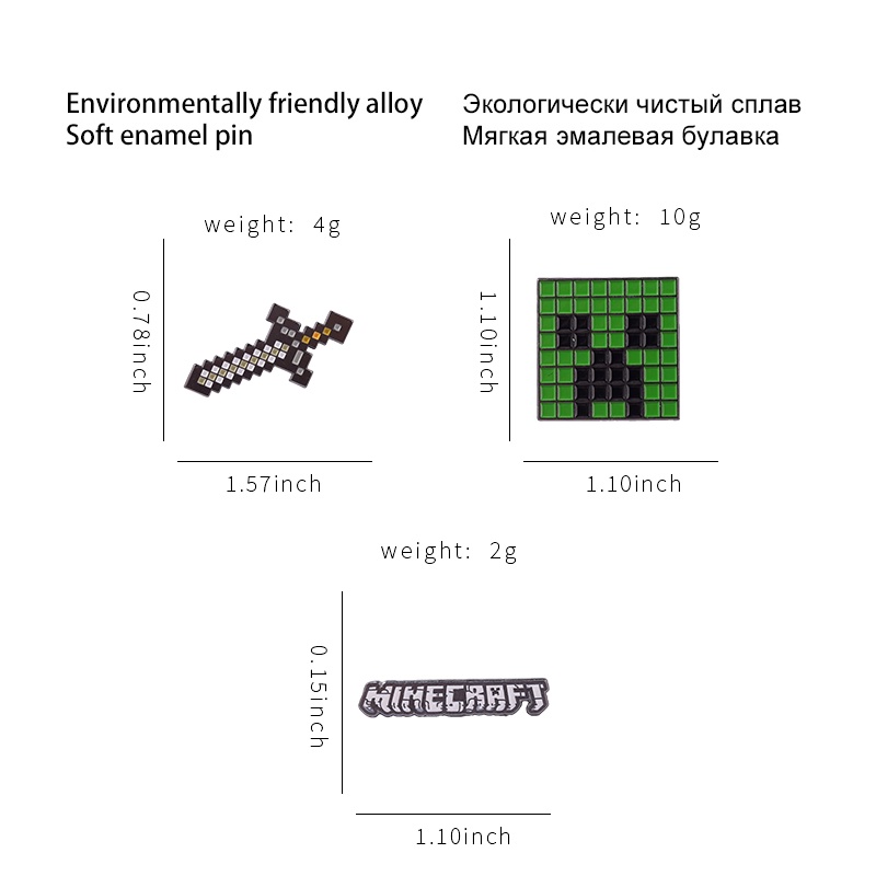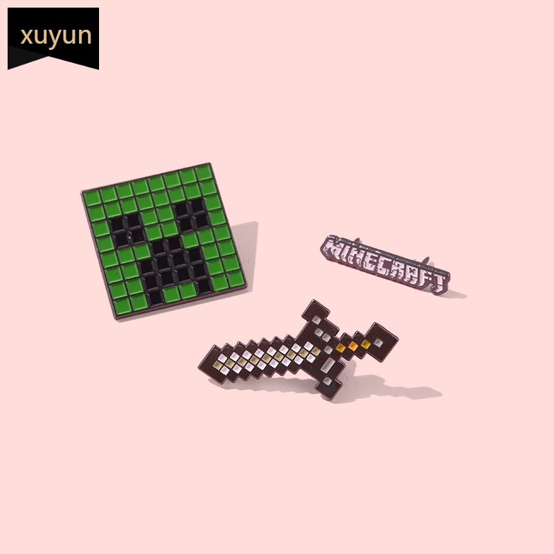 3 Styles Game Minecraft Lapel Pin Weapon Enamel Brooch Cartoon Backpack Badge Collectible Gift