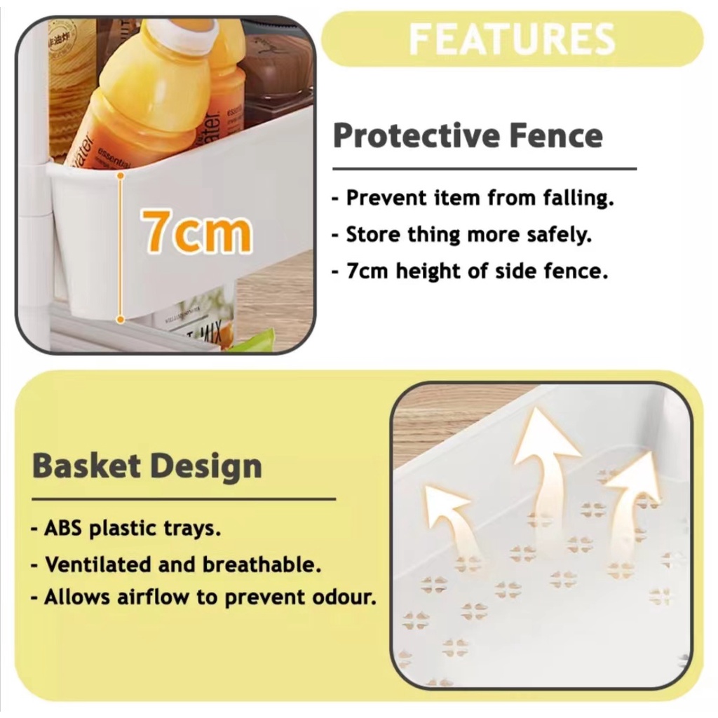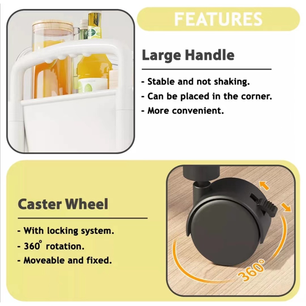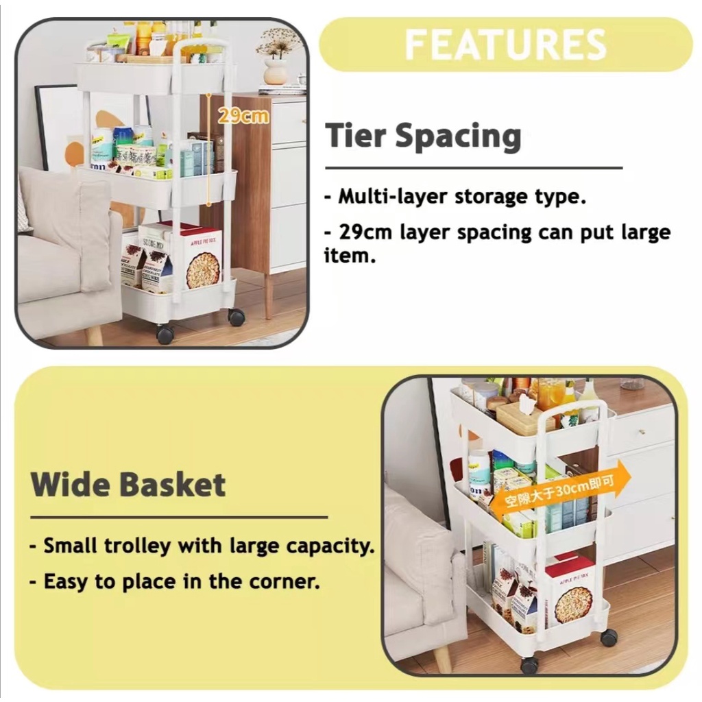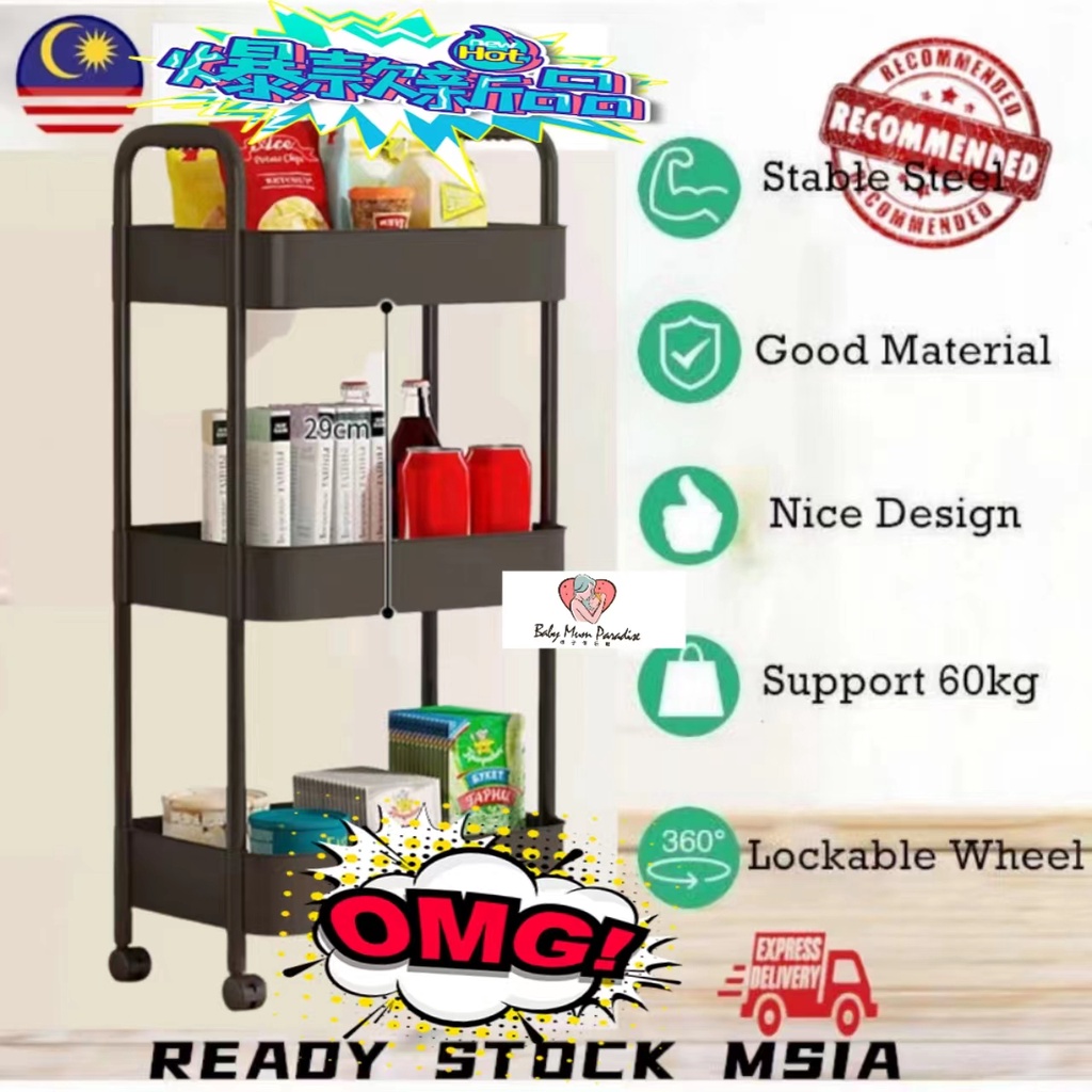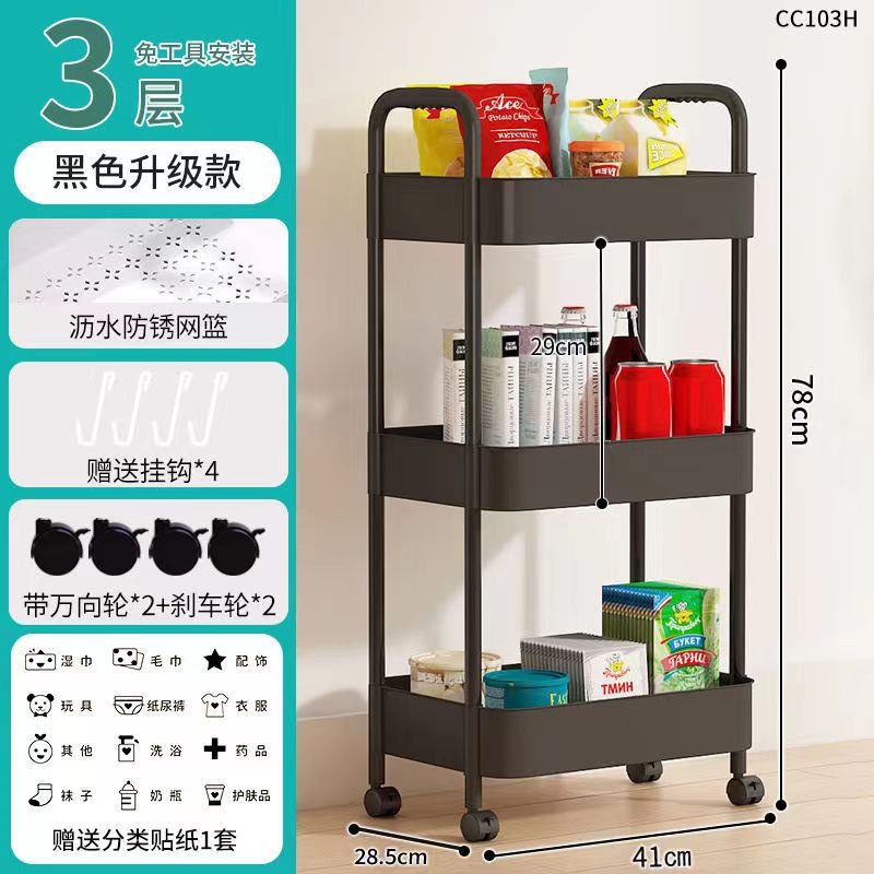 3 Tier Multifunction Rack Storage Trolley (PP Material 78cm)