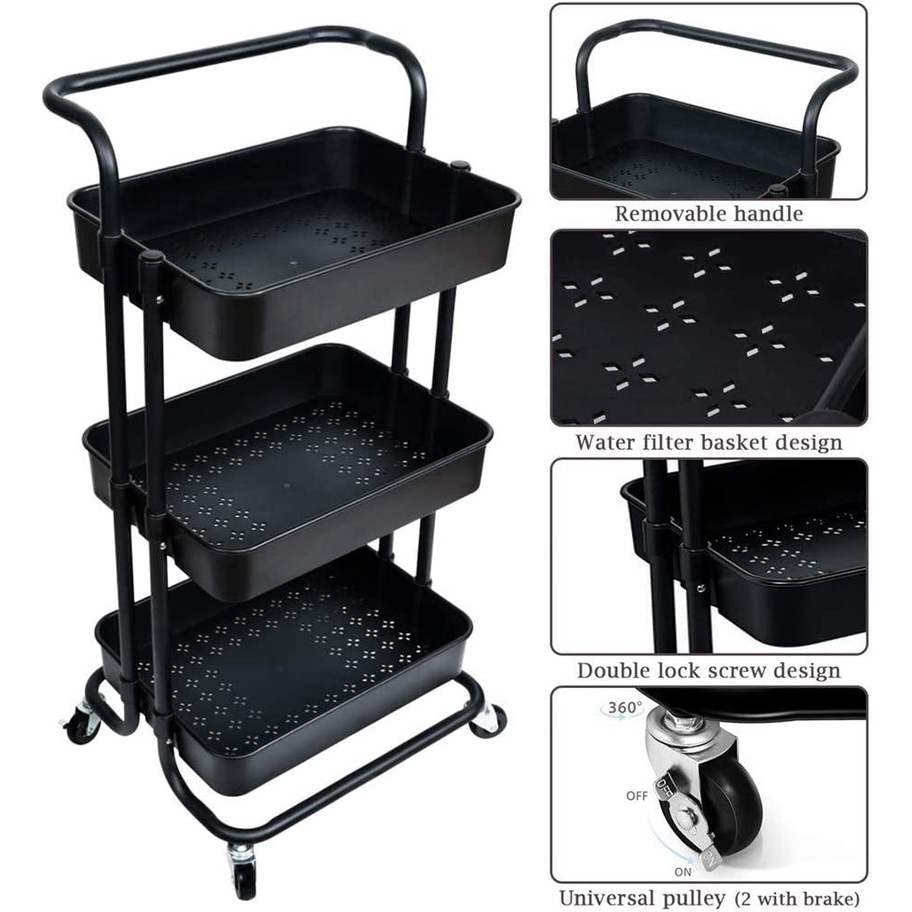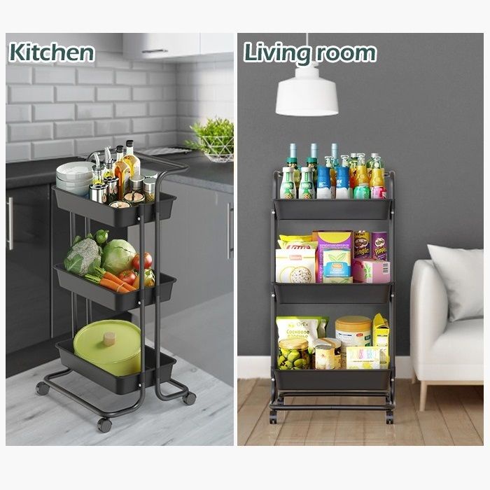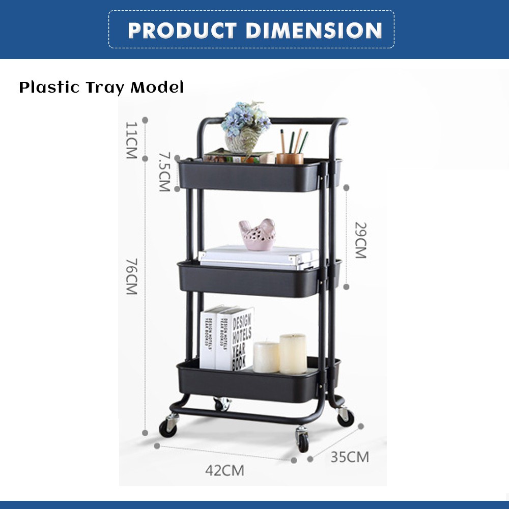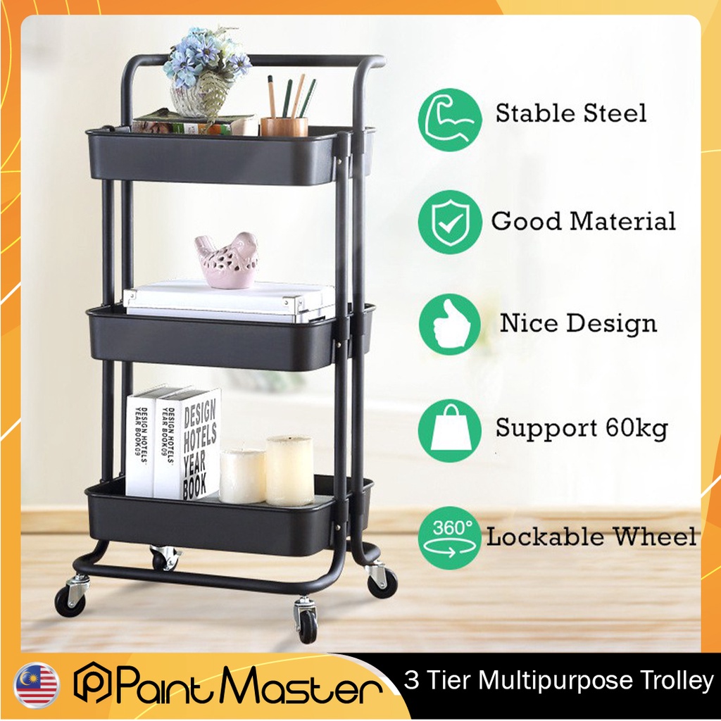 3 Tier Multifunction Storage Trolley Rack Office Shelves Home Kitchen Rack Rak Troli / 3 Tier Trolley