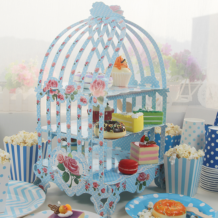 3 Tier Vintage Bird Cage Cup Cakes Stand Cupcake Stand Jamuan Raya Kuih Display Cake Rack Dessert Bar Decoration CS011B