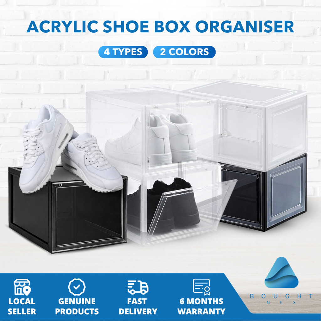 Acrylic Shoe Box Organiser - Magnetic Front & Side Opening Space-Saving Stackable Durable Thickened