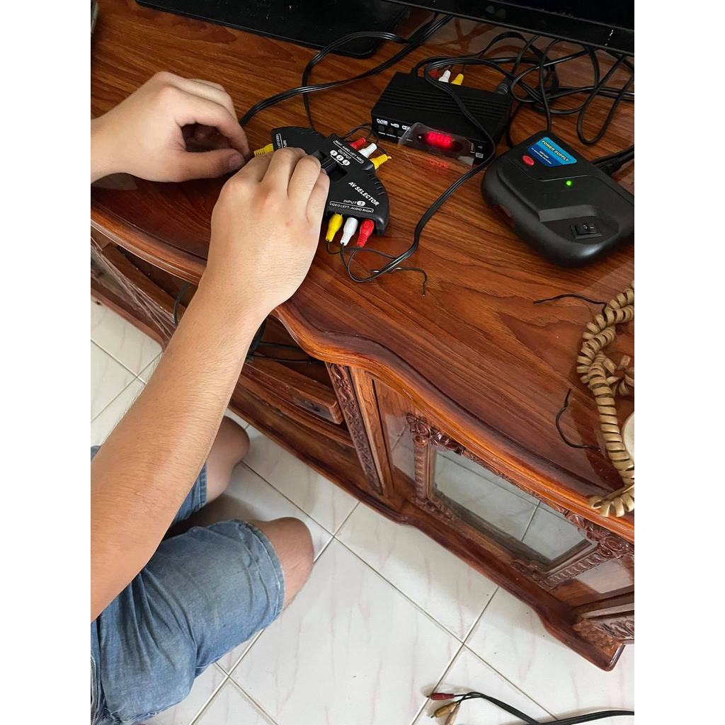 3 WAY RCA TV SELECTOR 3 IN 1 OUT SWITCH SYSTEM AUDIO VIDEO INPUT 3 VIDEO DEVICES TV SET AV SELECTER splitter RCA CABLE