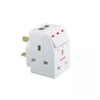 3 Way 3 Pin Adapter with Neon Switch & Surge Protector 3 Way 3 Pin Adapter/Myhom 3 Way Sirim Adaptor with Switch