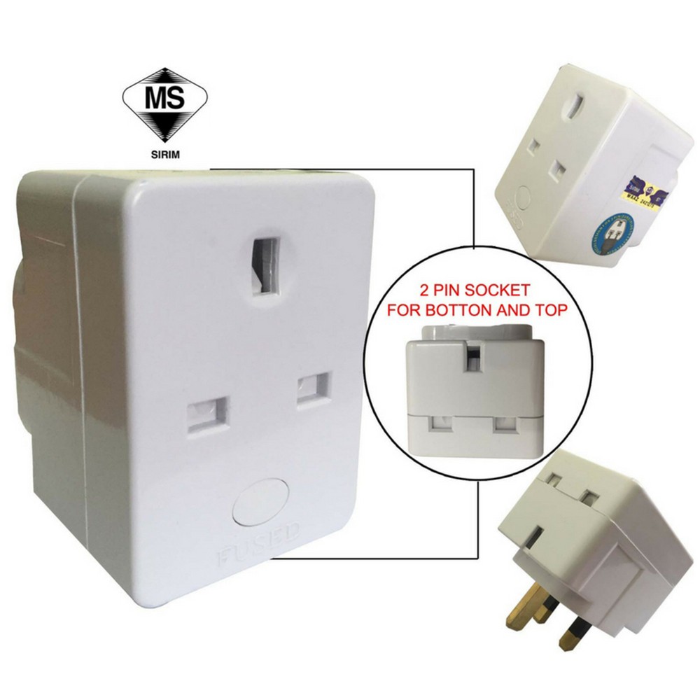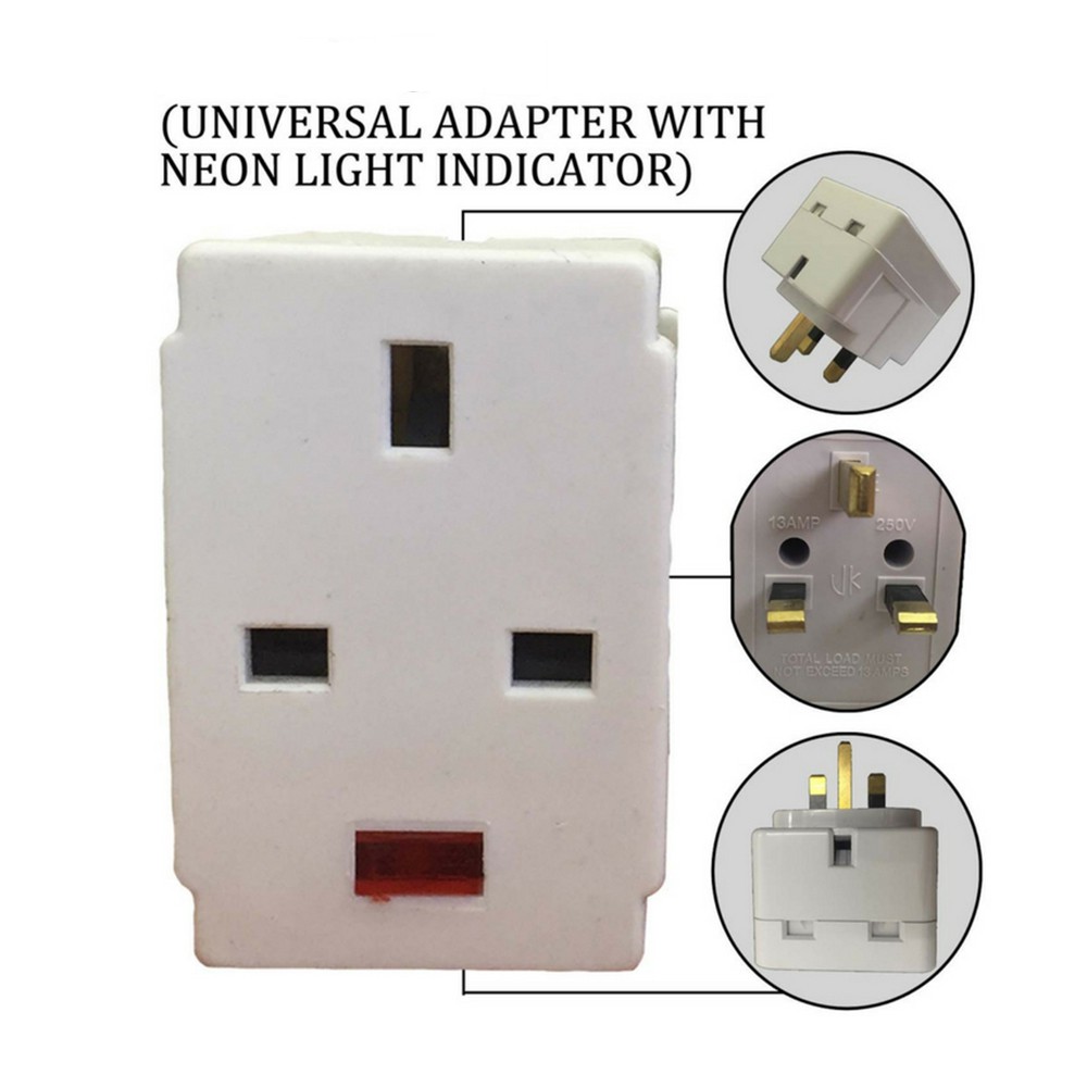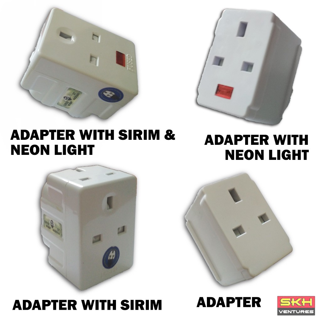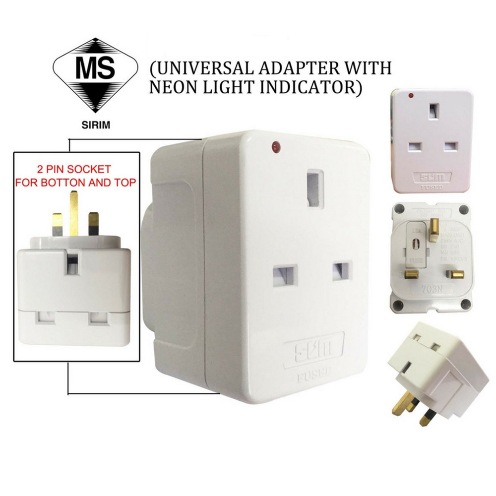 3 Way 3 Pin Multi Travel Adapter Socket Plug (3 Way / UK 3 Pin) - Neon Light Indicator / Sirim Certified / High Quality