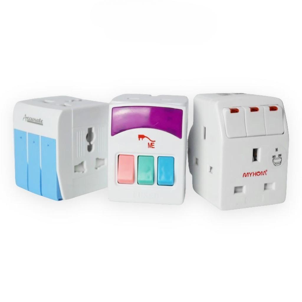 3 Way Adaptor Adapter Plug 3 Pin Socket Plug Extension Socket Multi Plug Socket With Switch Neon Plug Easy 2 Pin