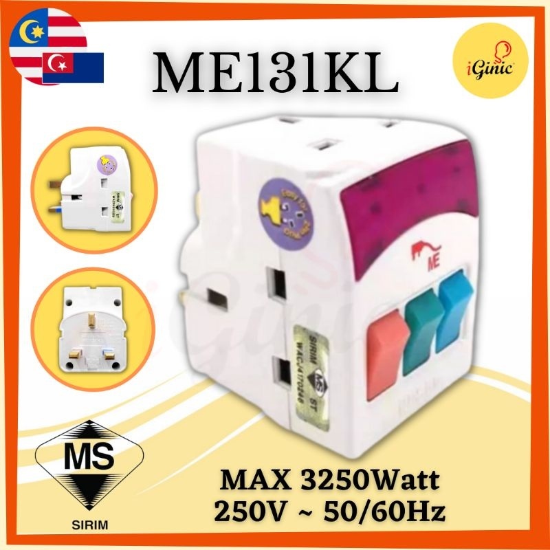 3 Way Adaptor Adapter Switch USB Socket Outlet 3 PIN Plug Extension Wall Universal Multi Travel Multiple Plug (Sirim)