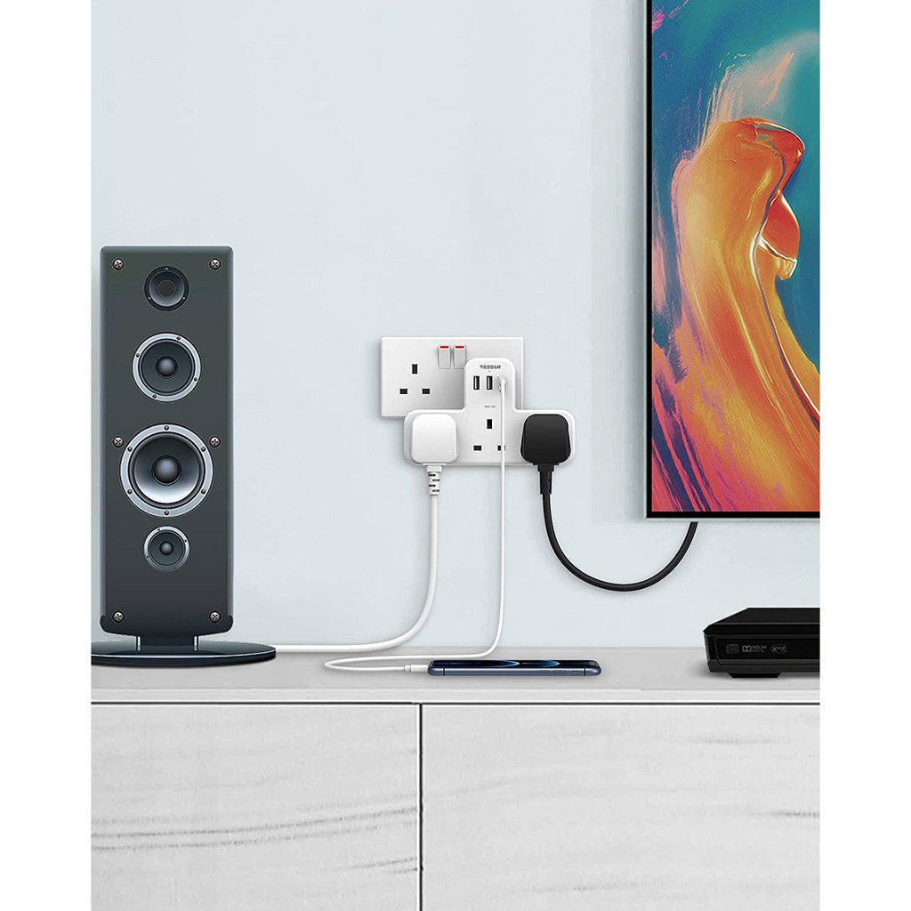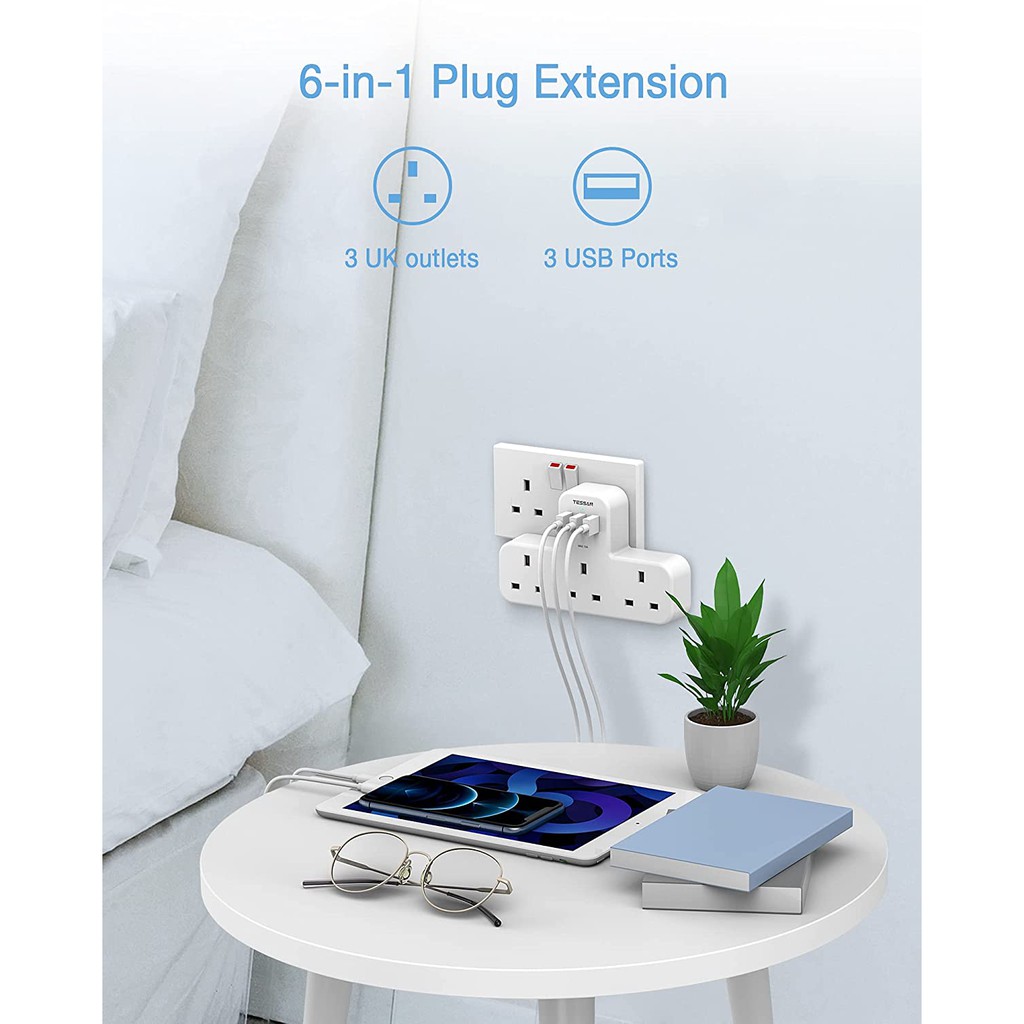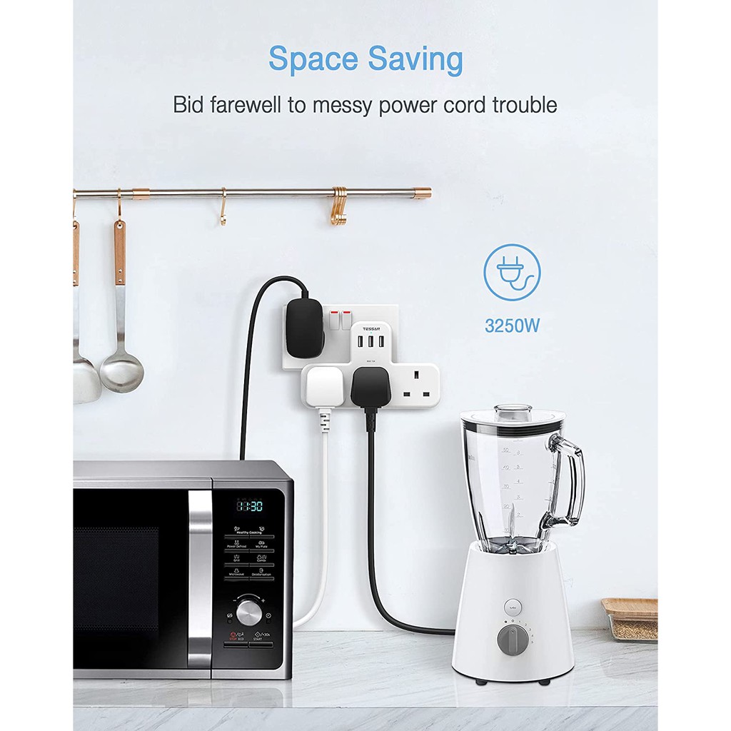 3 Way Extension Plug Adaptor MY with USB, Multi Plug Extension with 3 USB, 13A Wall Power Socket Extender Adapter for Home, Office, Kitchen