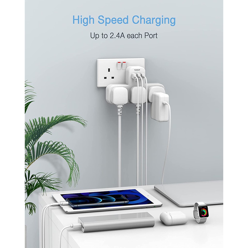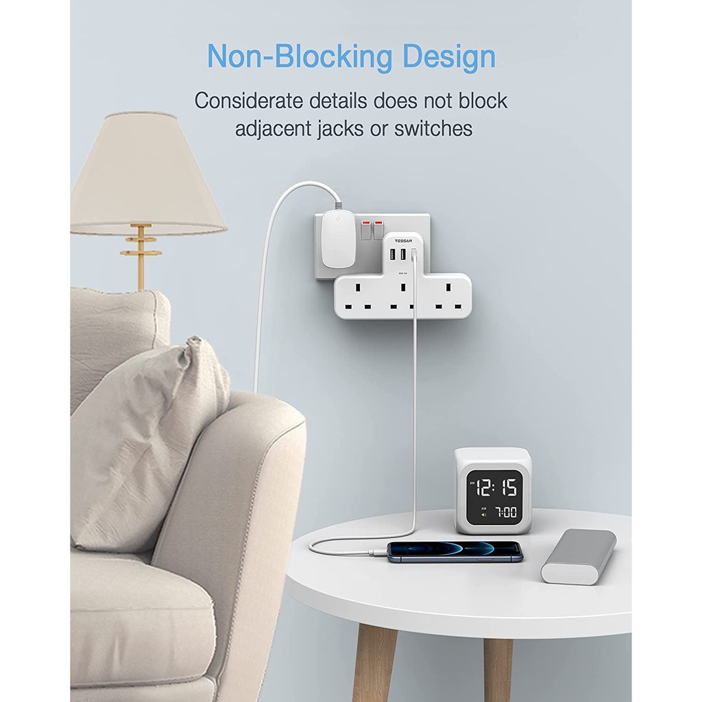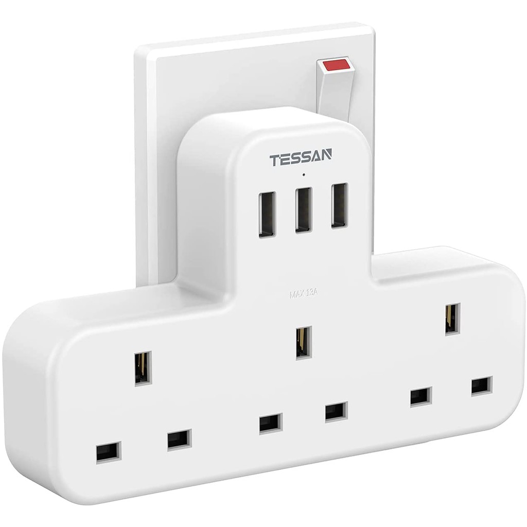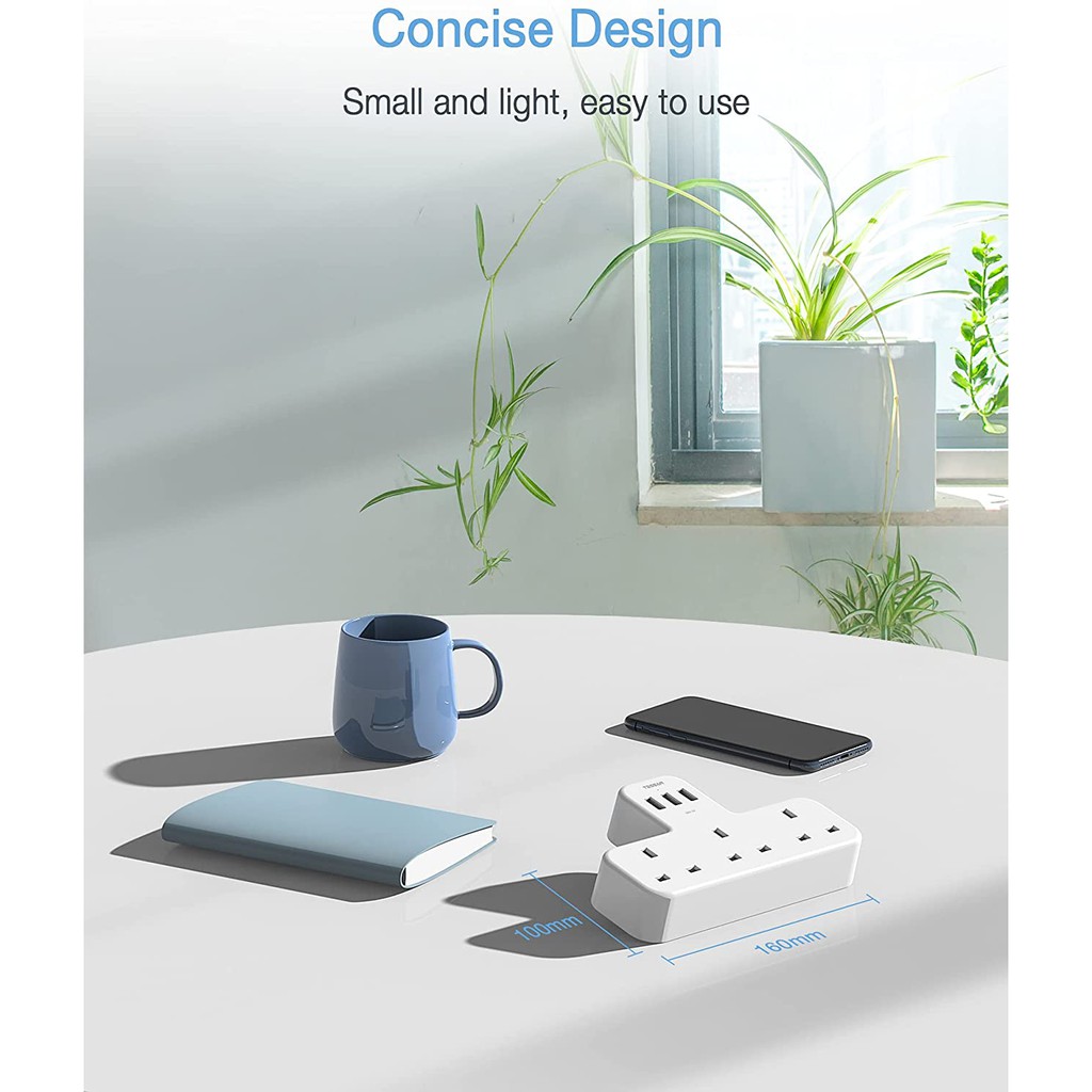 3 Way Extension Plug Adaptor MY with USB, Multi Plug Extension with 3 USB, 13A Wall Power Socket Extender Adapter for Home, Office, Kitchen