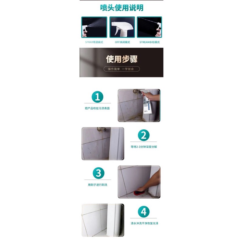 3 bottle Ceramic Tile Cleaner Powerful Decontamination and Floor Tiles Cleaning Oxalic Acid Toilet Tile Floor Cleaners