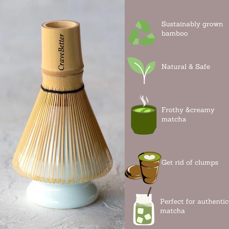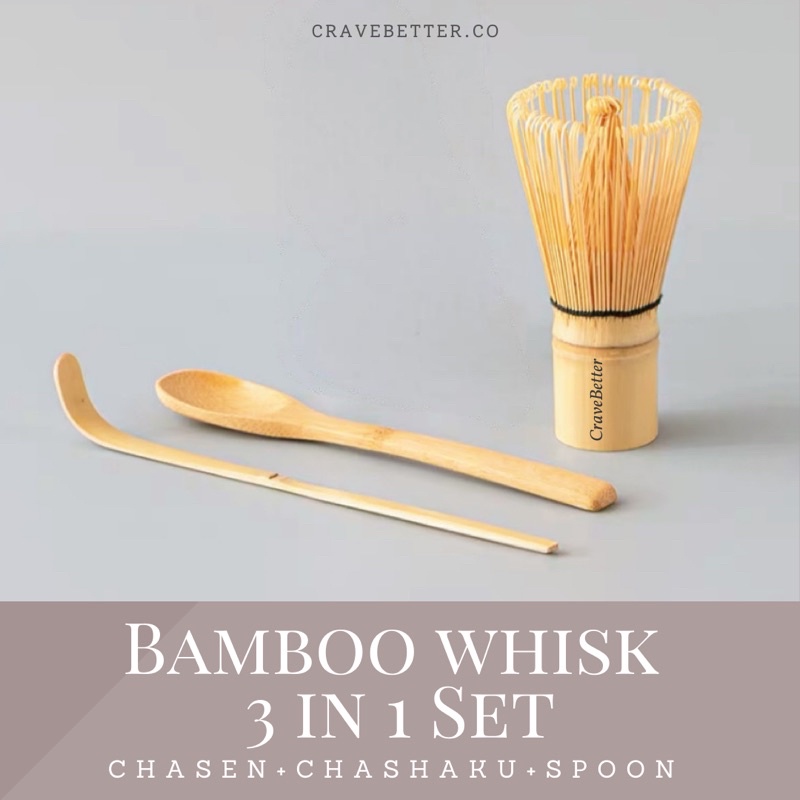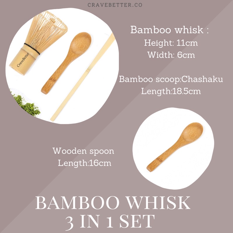 3 in 1 100 Prong Bamboo Whisk Set/ CHASEN / Long Bamboo Scoop(Chashaku)/ Wooden Spoon