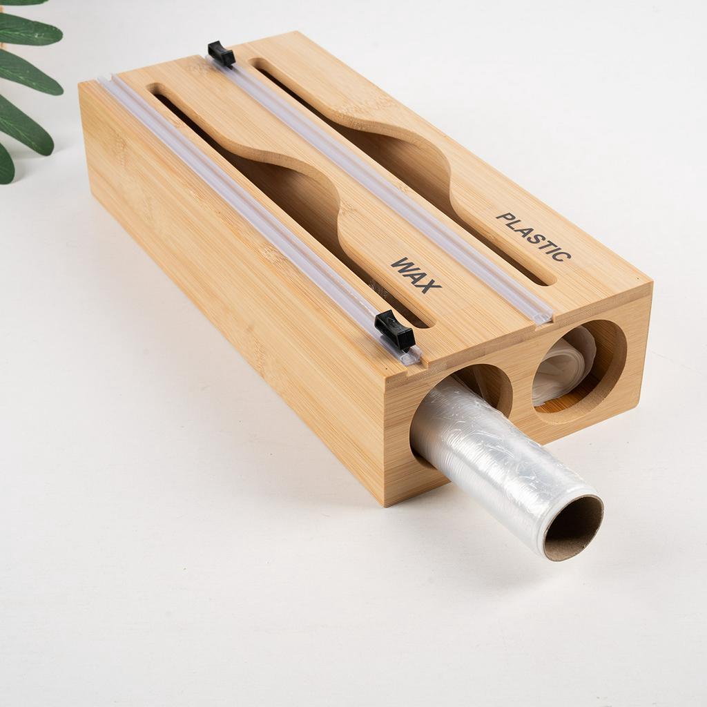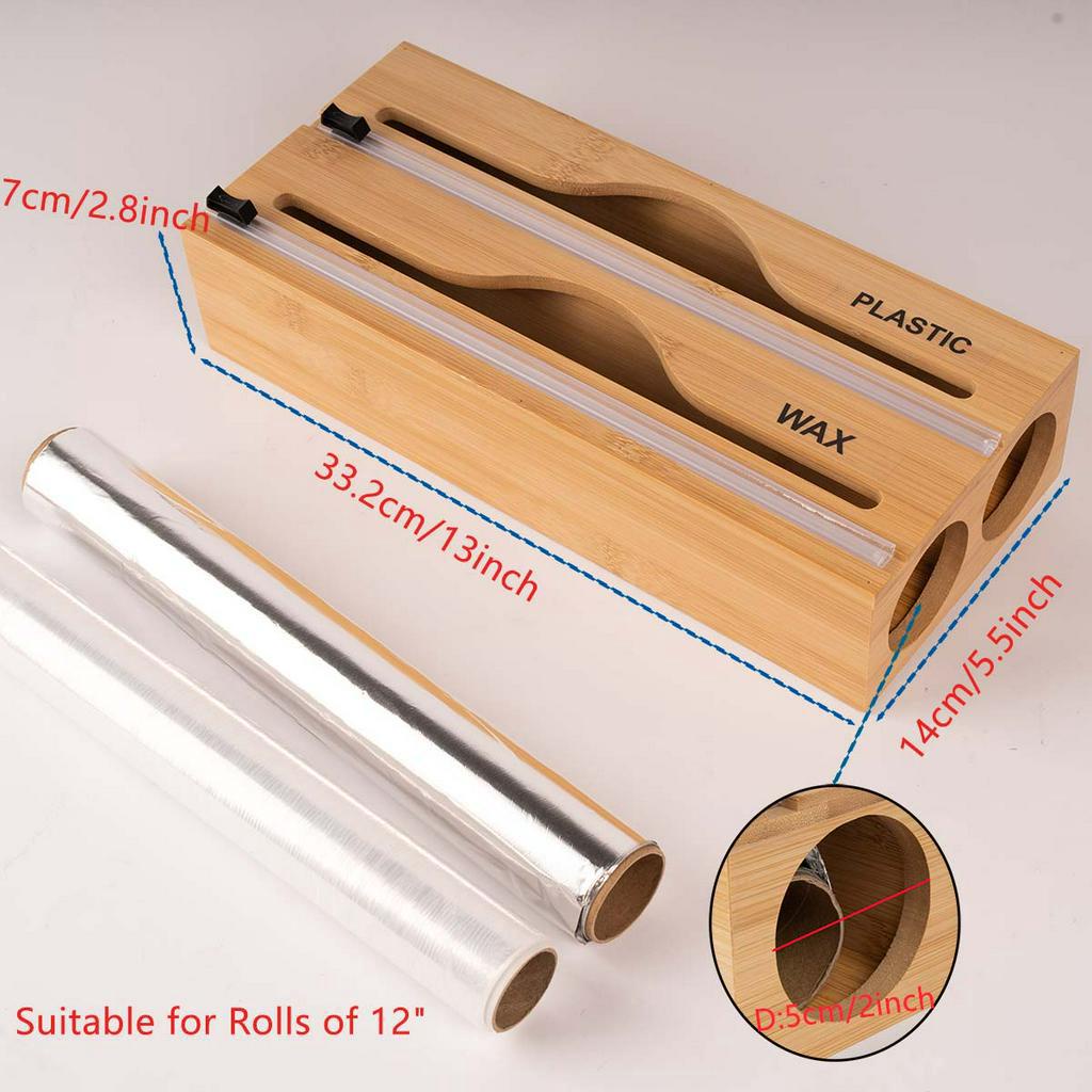 3 in 1/2 in 1 Bamboo Plastic Wrap Cutter Desktop Wall-Mounted Plastic Wrap Storage Box Kitchen Drawer Three-Grid Tin Foil Paper Plastic Wrap Sheepskin Paper Cutting Box
