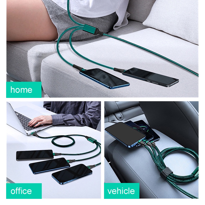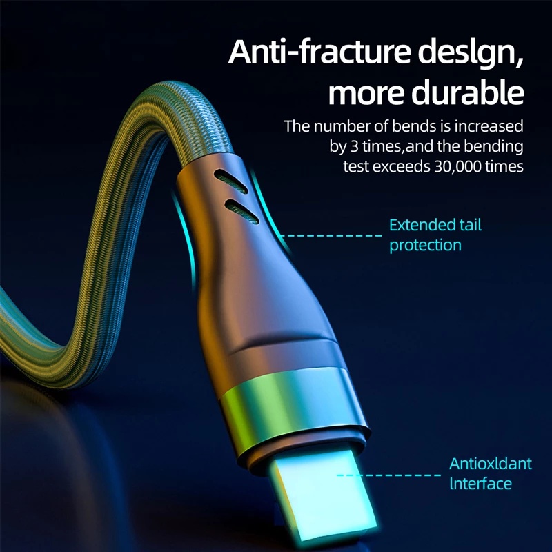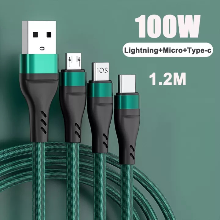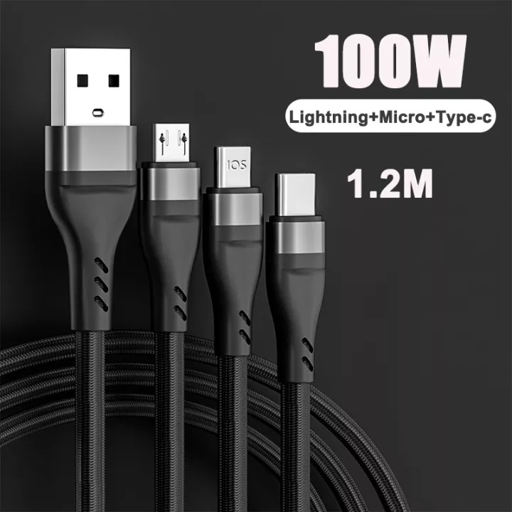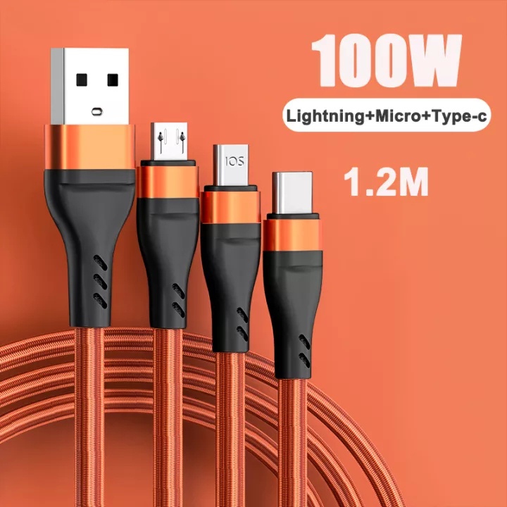 3 in 1 Braided Micro USB Type-C Cable 100W Smartphone Charger Cable1.2M, 6A fast charging cable