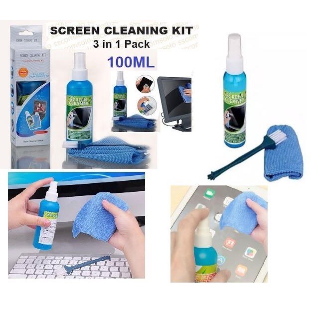 3 in 1 Cleaner Kit Screen for Phone Computer Laptop Tablet TV LCD Monitor Camera Lens Cleaner - Anti Dusk Spray 100ml