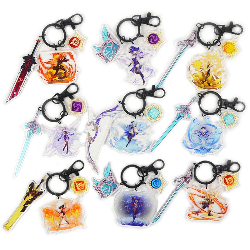 3 in 1 Genshin Impact Keychain genshin impact Raiden Shogun miko Xiao Hutao Skill eyes of God 3 in1 Genshin Keychain