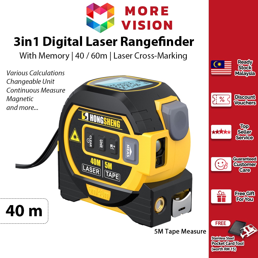 3 in 1 Laser Rangefinder With Memory 60m 40m 5m Measuring Tape Distance Meter Ruler LCD Measure Display Measurement Area