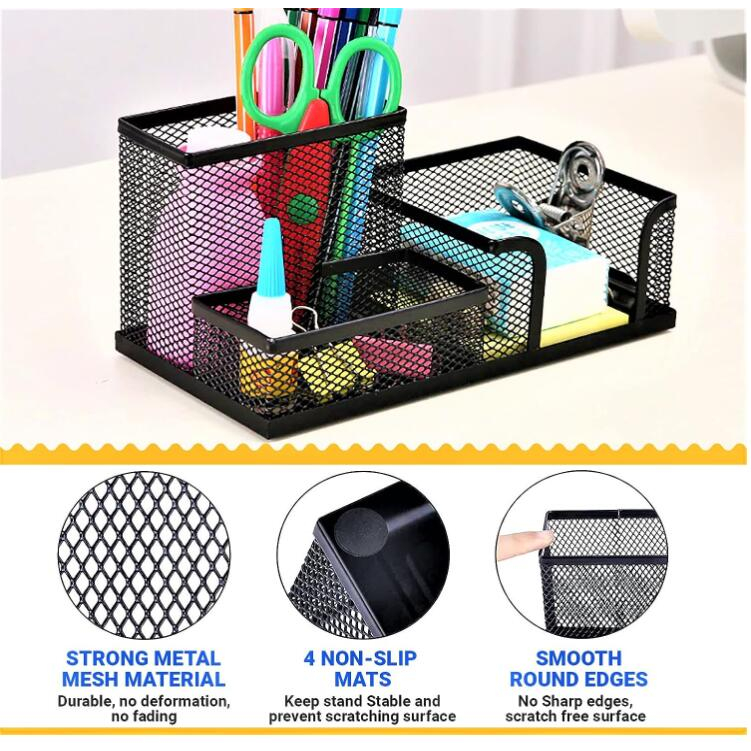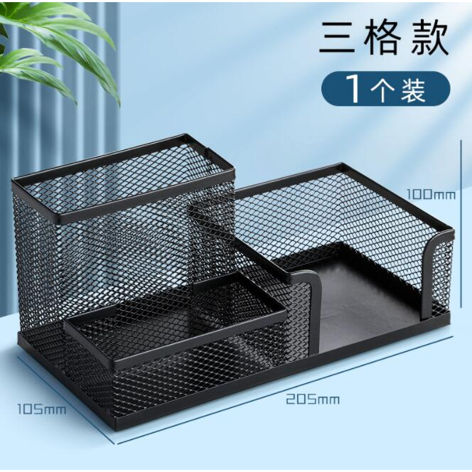 3 in 1 Mesh Pen Holder for Desk, 3 Compartments Pencil Holder Desk Organizer Caddy with Sticky Notes Holder Easy Storage Suitable for Home, Office and School