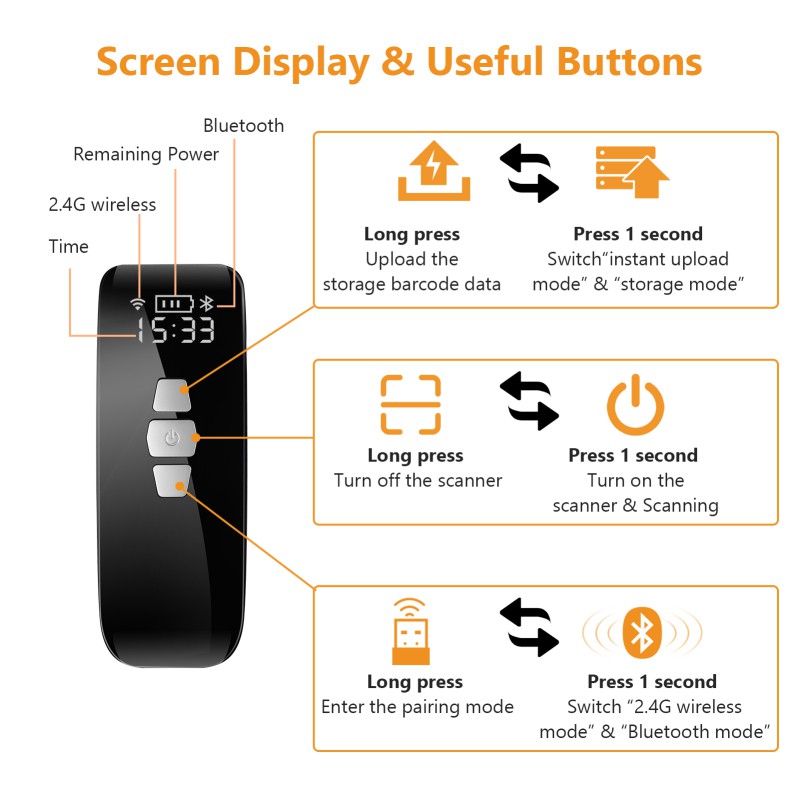 3 in 1 Mini Bar Code Reader 2.4G Wireless & USB Wired 1D 2D QR Code Bluetooth Barcode Scanner