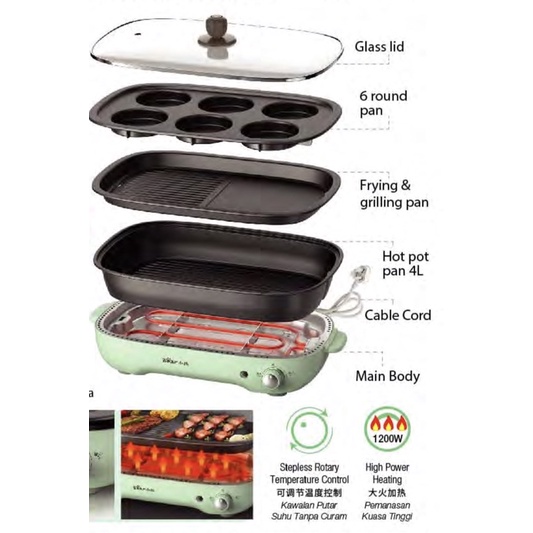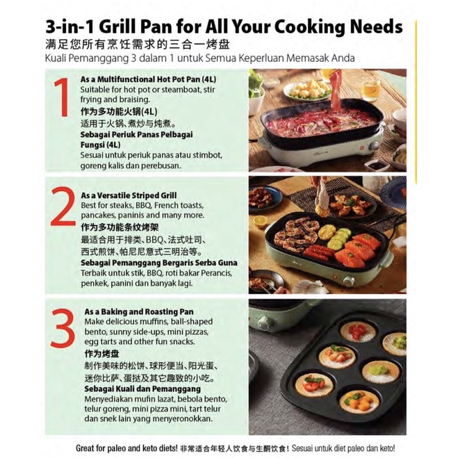 3 in 1 Multi Grill Pan BEAR Cosway periuk kuali leper cooker electric serbaguna steamboat bbq grill
