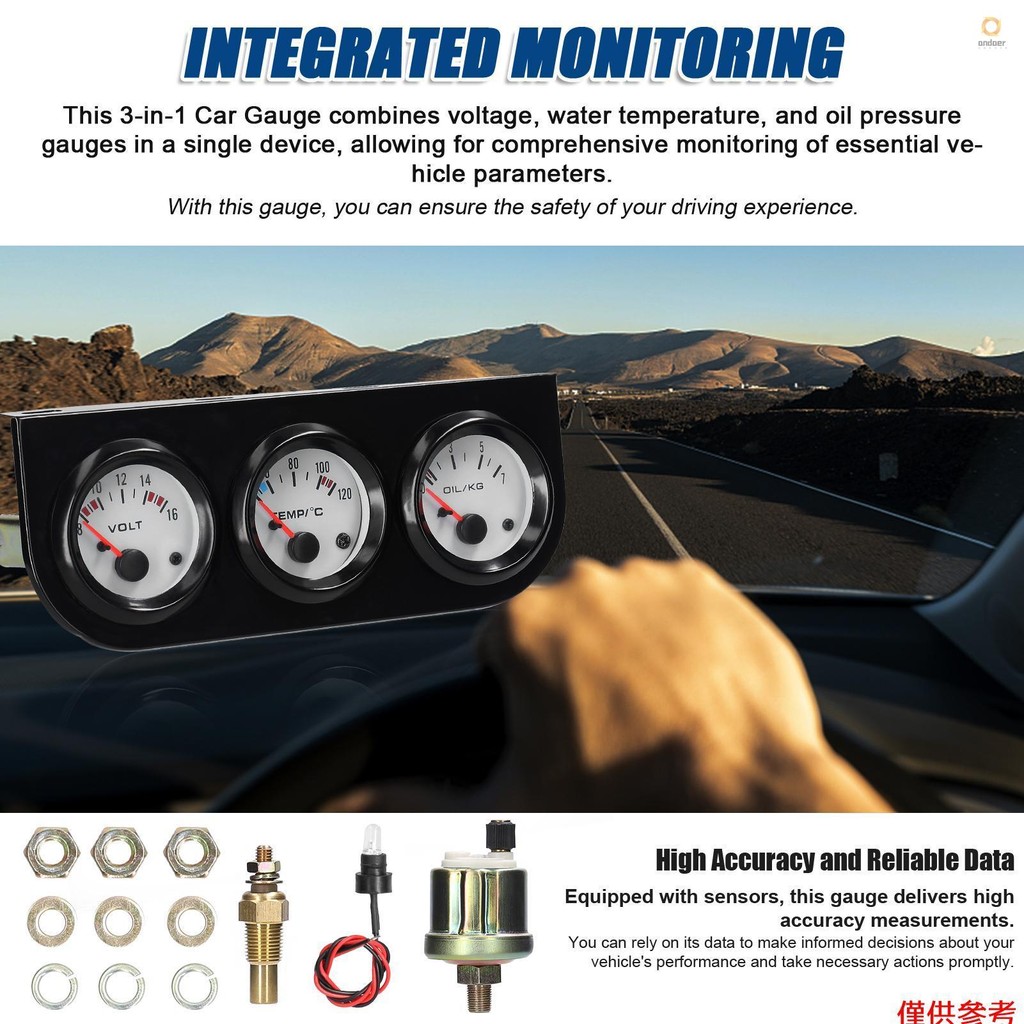 3 in 1 Multifunctional Car Meter Auto Gauge Kit 52mm Voltage Water Temperature Oil Pressure Meter Voltmeter with Sensor for Car Truck RV Marine Boat
