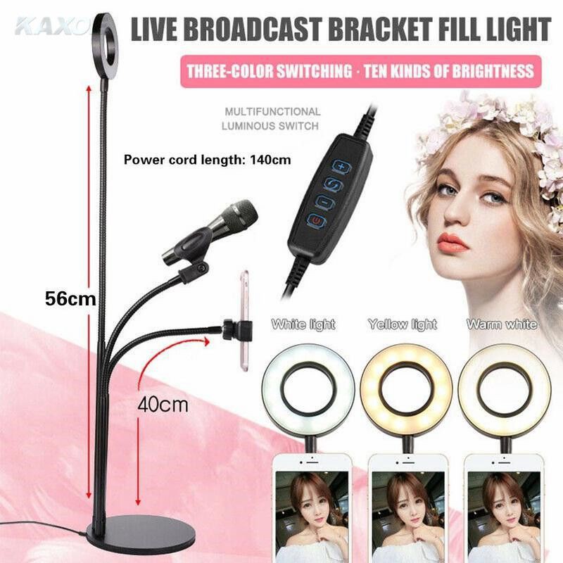 3 in 1 Phone Stand with Selfie Light & Microphone Holder for Live Stream TIK TOK FACEBOOK YOUTUBE
