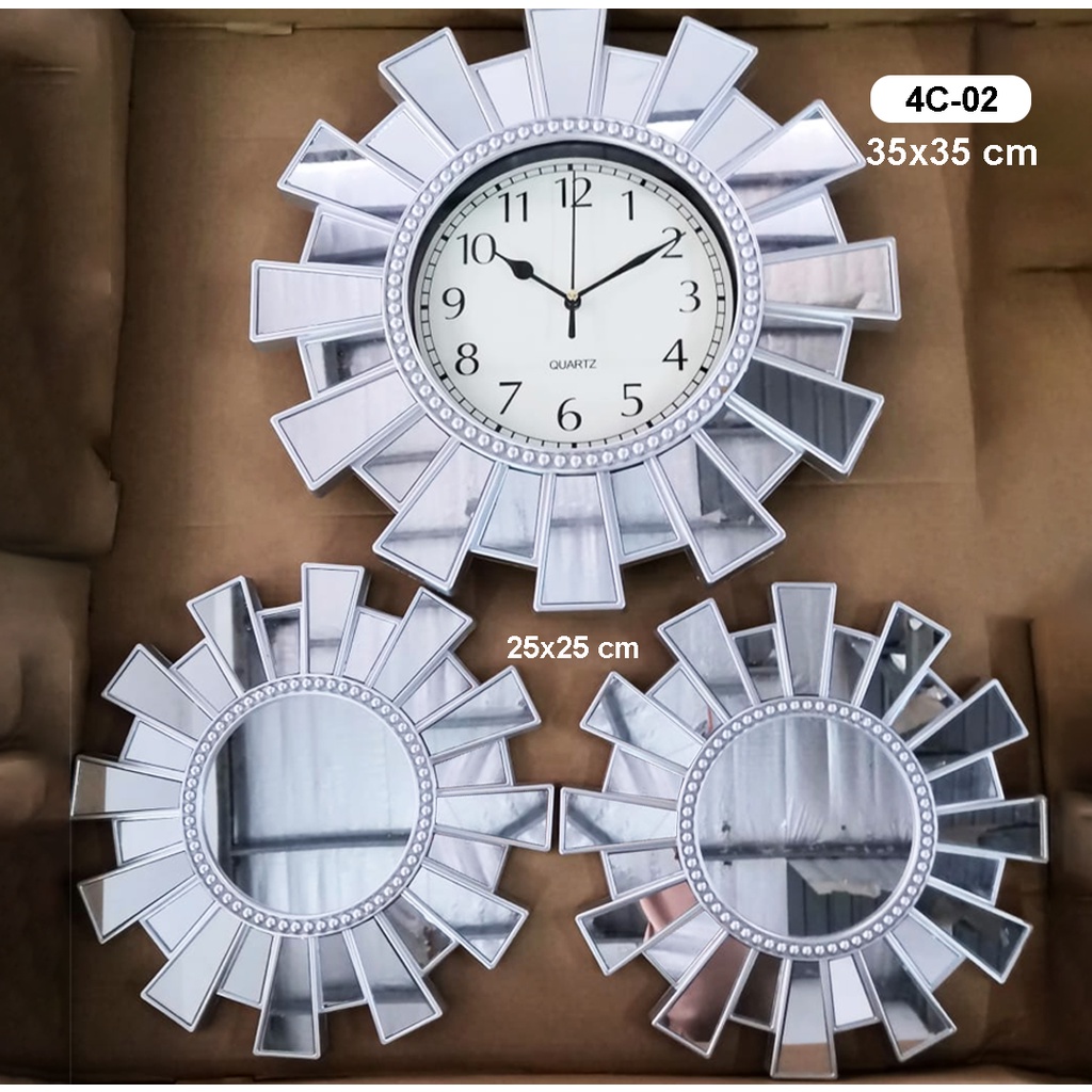 3 in 1 Wall Clock with Elegant Mirror in Gold Silver Jam Dinding Emas Perak set jam dinding