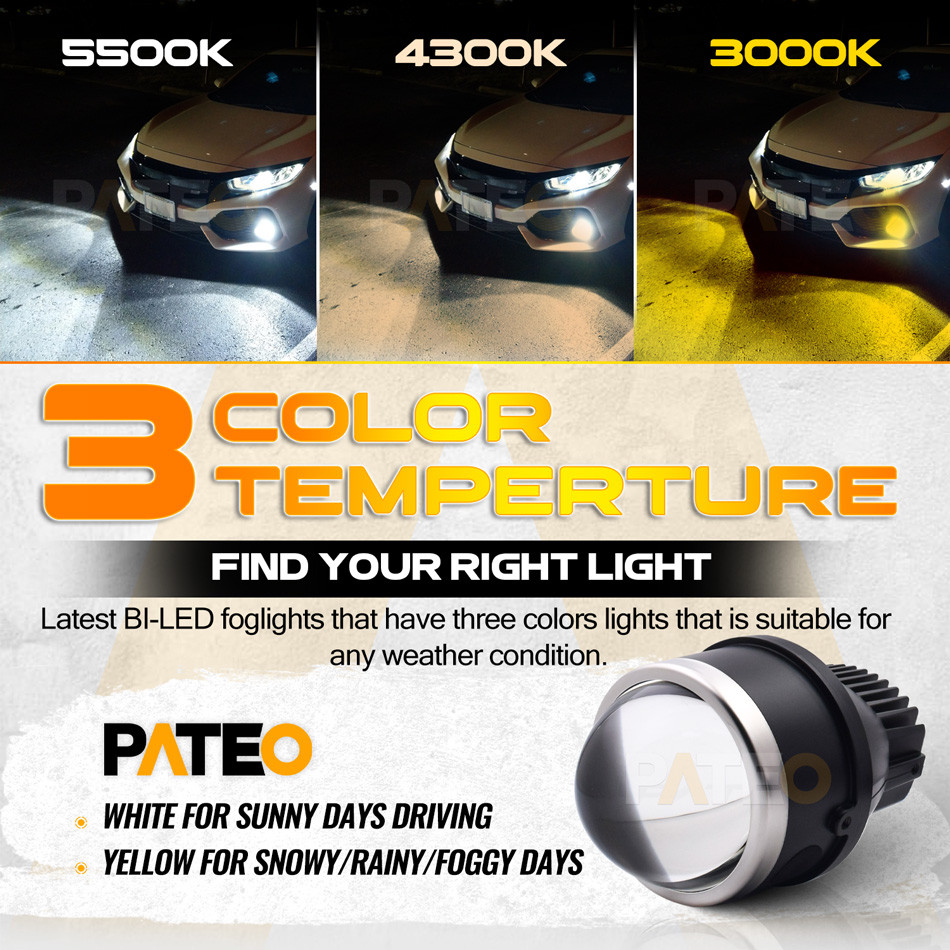 3 inch Bi-led Fog Lights Projector Lens Thricolor For Toyota Corolla Yaris Camry Avanza Hilux RAV4 Vios Avensis Aygo Prius Sportlights 3000K 5500K 6000K