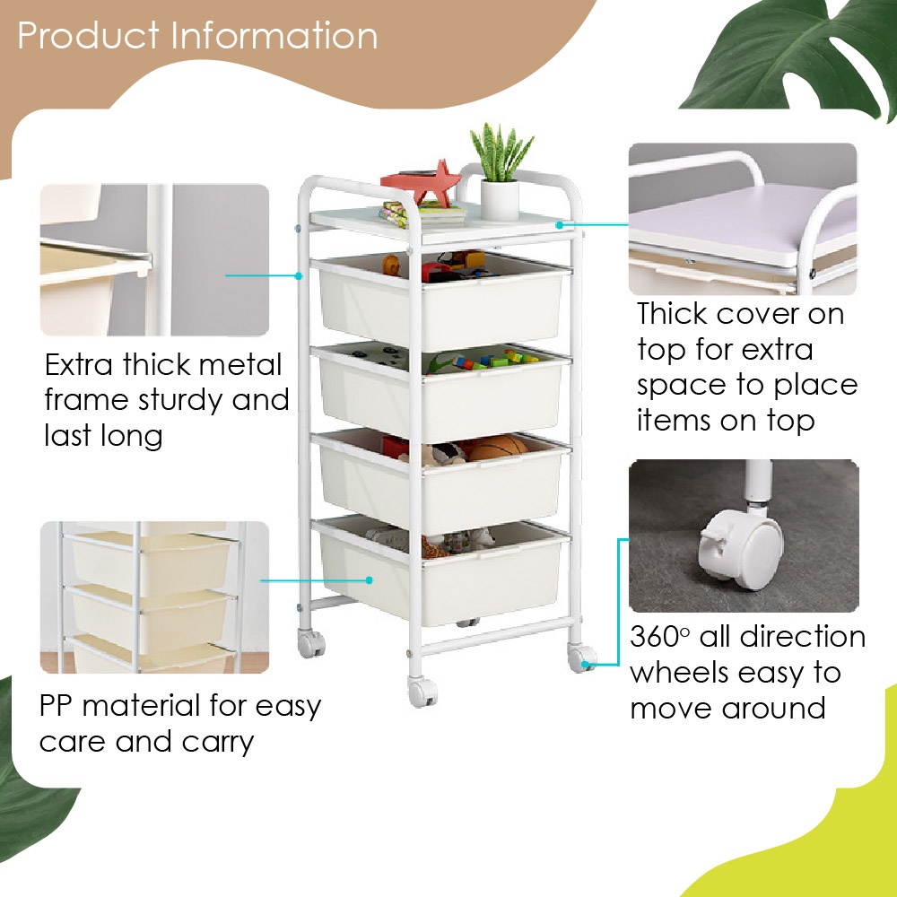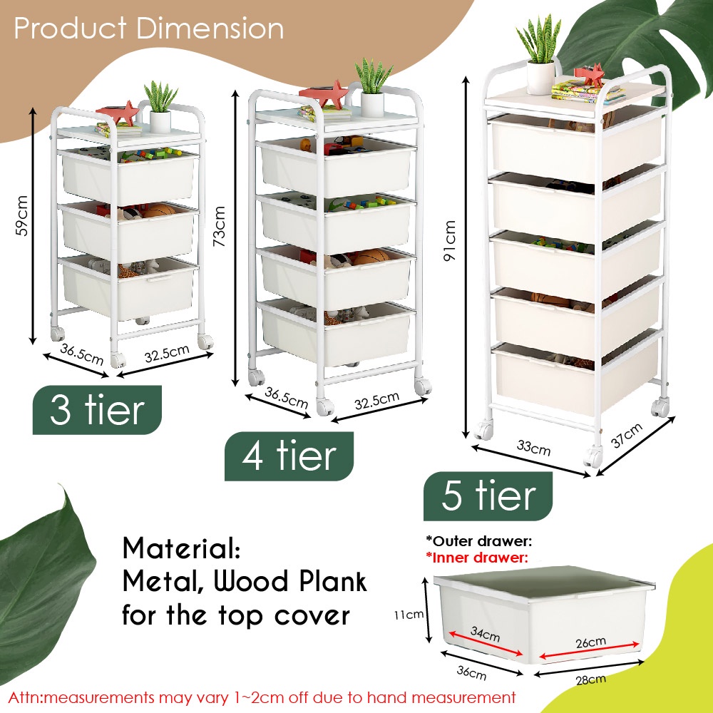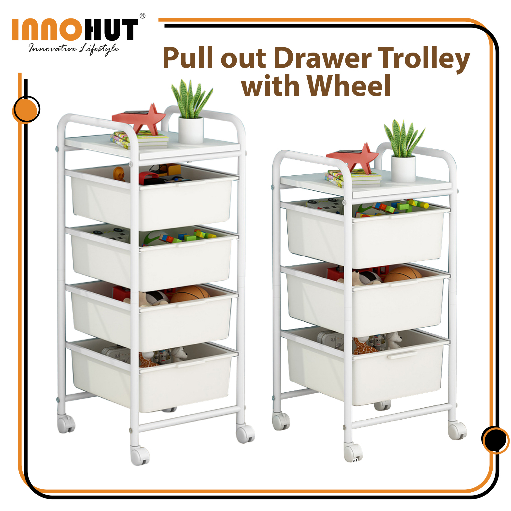 Innohut Multipurpose Pull Out Drawer Trolley Rack With Handle And 360° Rotation Wheel Troli Tingkat Rak Tingkat