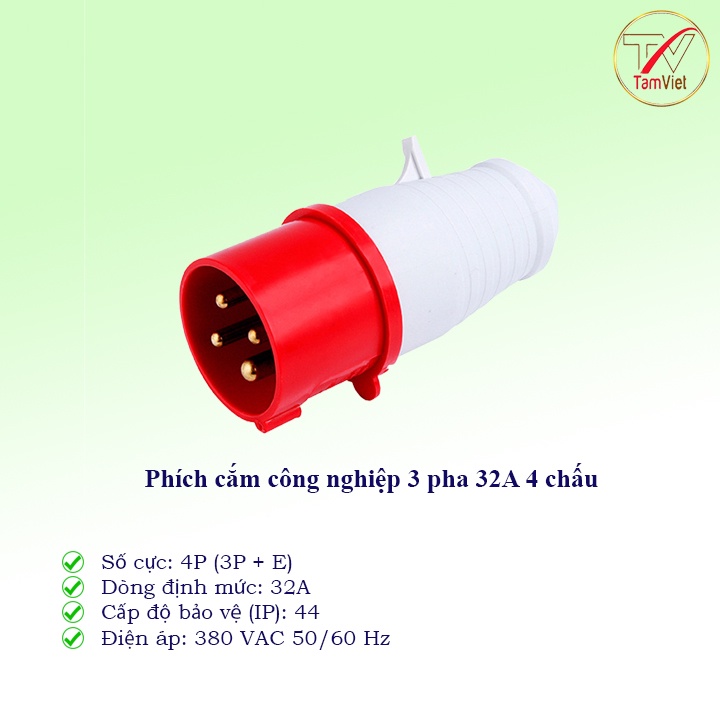 3-phase 4-pin industrial power plug 16A, 32A voltage 380V