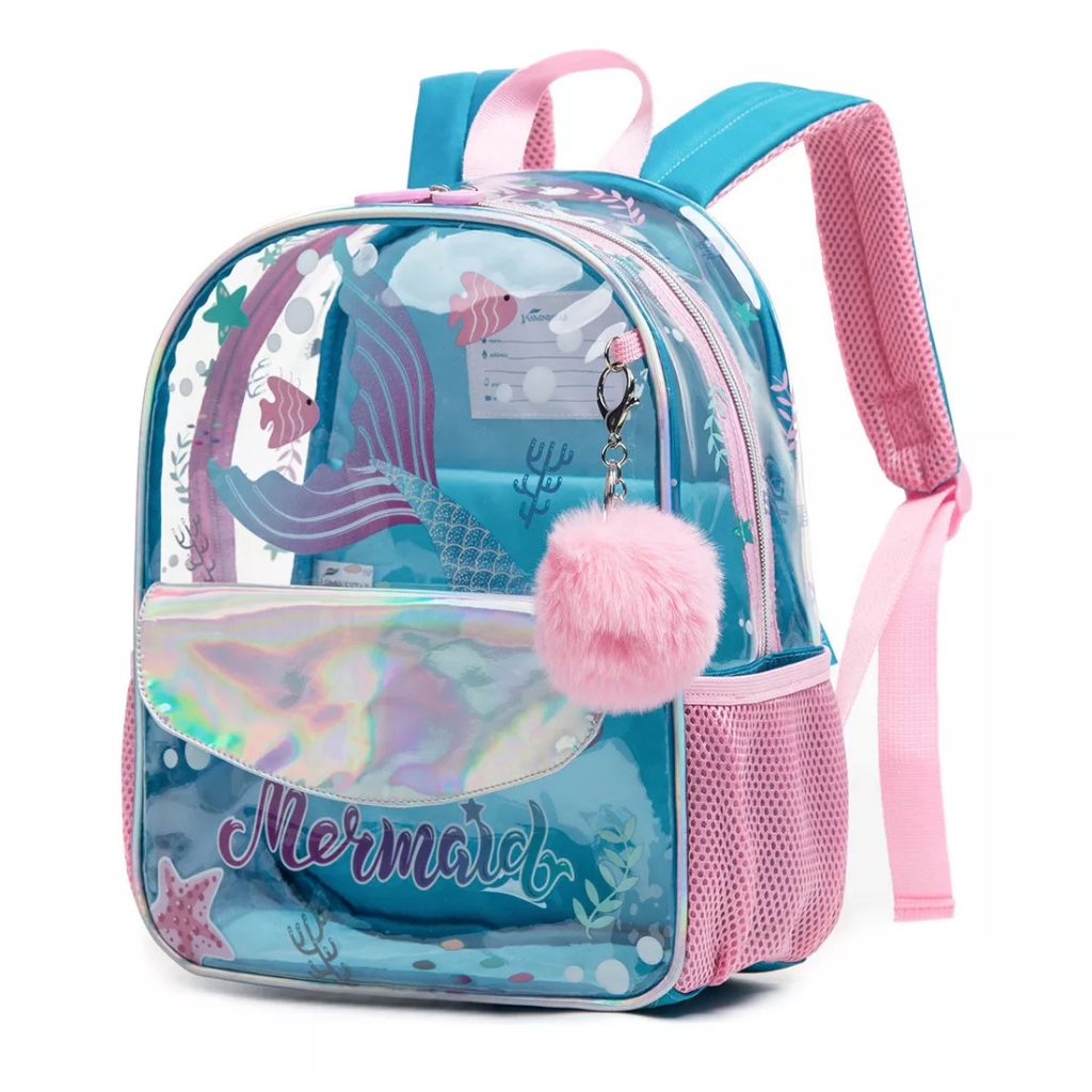 3 pieces mermaid transparent backpack, girls backpack set, 13 inch backpack with lunch bag and pencil bag, preschool backpack, kids backpack, elementary school student backpack