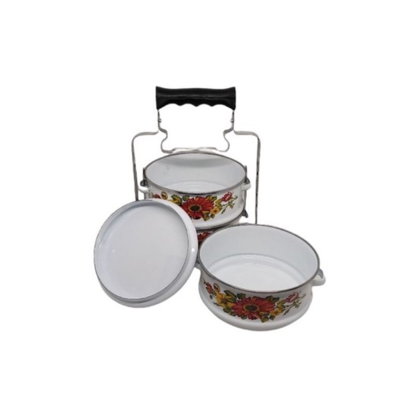 Enamel FOOD RANTANG 3 LAYERS ENAMEL RANTANG RICE & VEGETABLE RANTANG LUNCH BOX 3