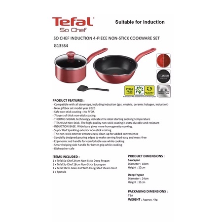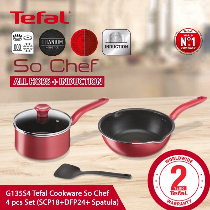 3.3 BEST DEAL TEFAL SO CHEF 4 PCS NON-STICK COOKWARE SET G135S4 READY STOCK !!