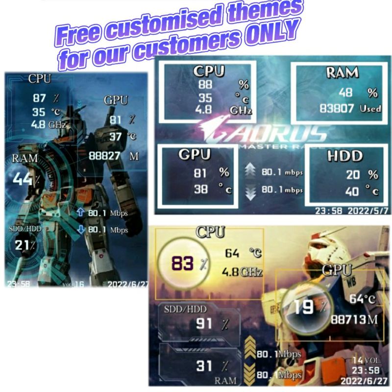 3.5" IPS Computer Monitoring Smart Screen CPU GPU RAM HDD Monitoring Performance Display TYPE-C IPS Sensor Panel