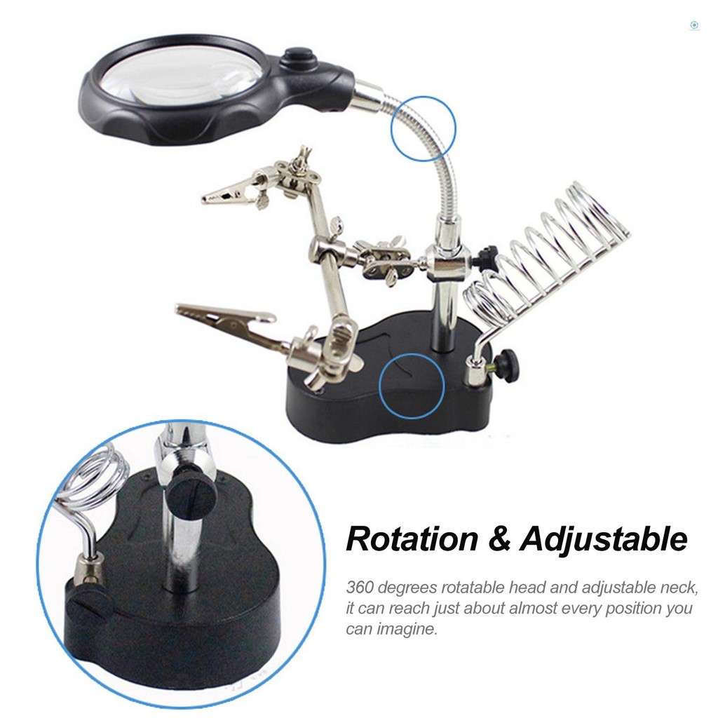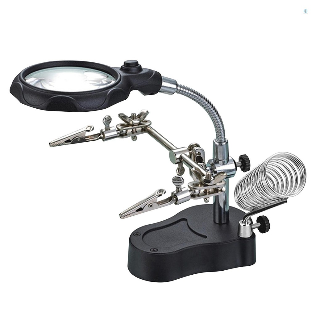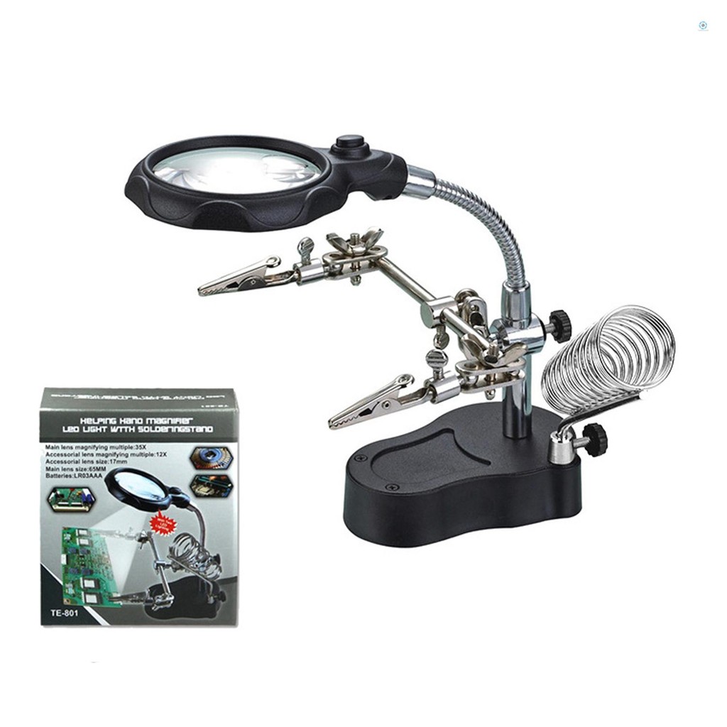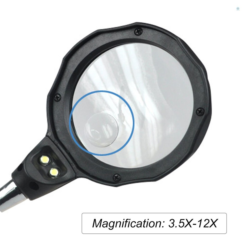 3.5X 12X Desktop Magnifier LED Light Helping Hands Table Magnifier Glass Stand with Alligator Clips Adjustable Magnifying Glass for Helping Hand Repair Reading Crafts Sewing