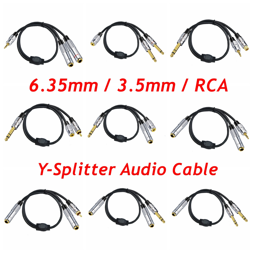 3.5mm 6.35mm RCA Y-Splitter Audio Cable 0.5m, 1-to-2 6.35 to 3.5 RCA Male Female TRS Stereo Hi-Fi Audio Cable 50cm for Microphone, Mic,Speaker,Subwoofer, DVD,Smart Phone,Laptop