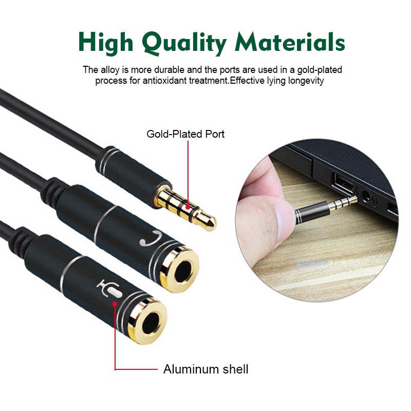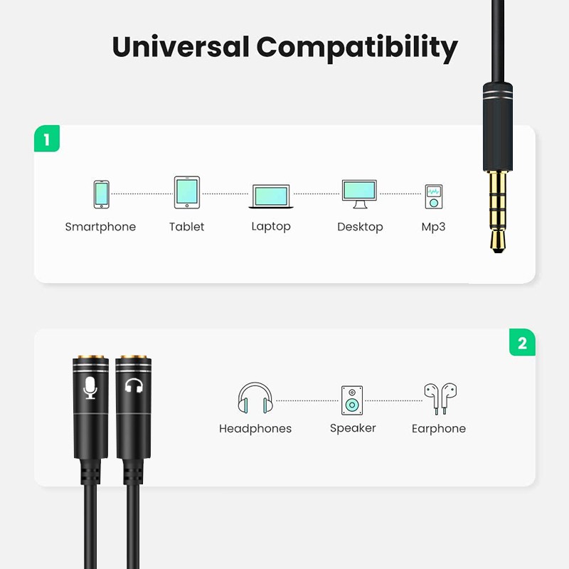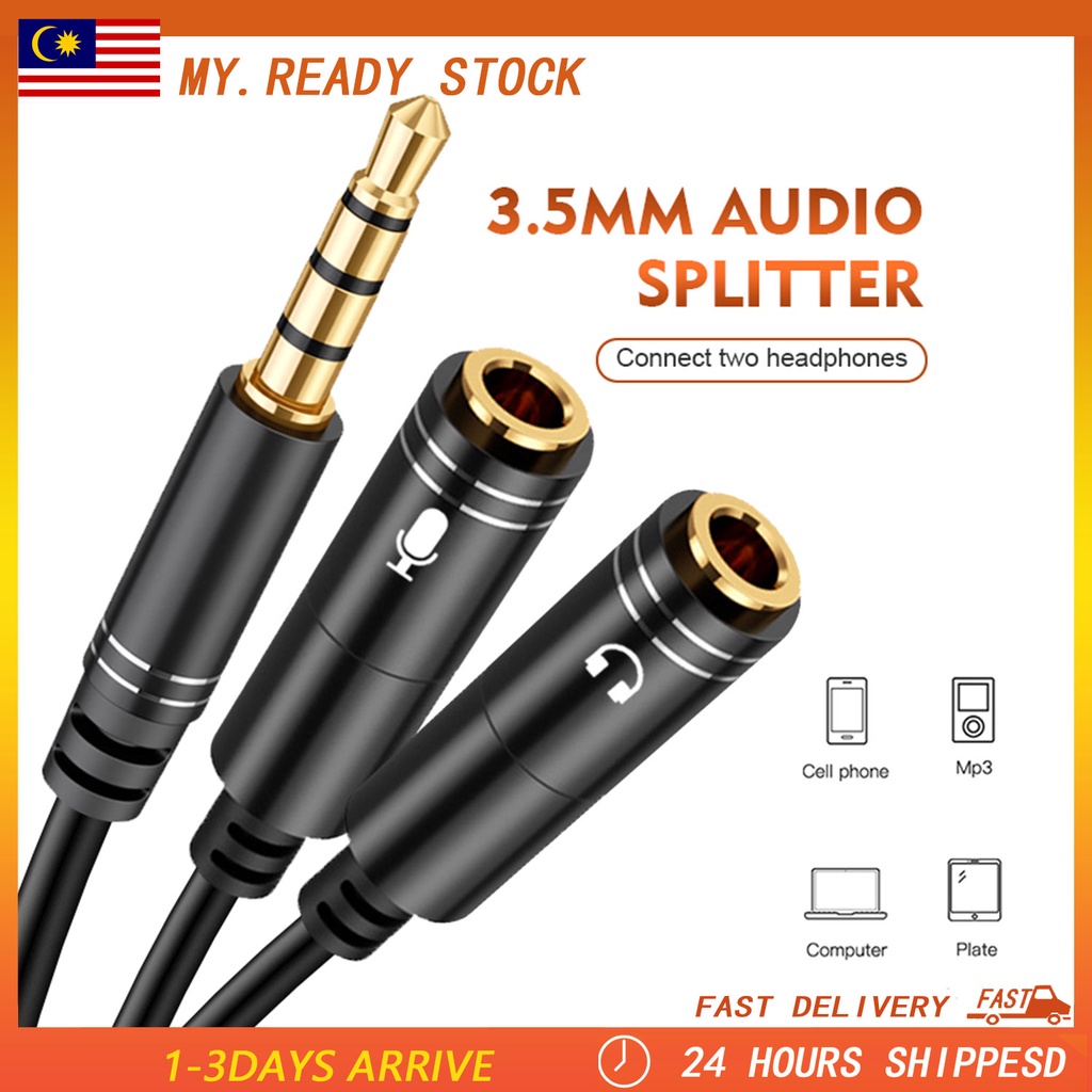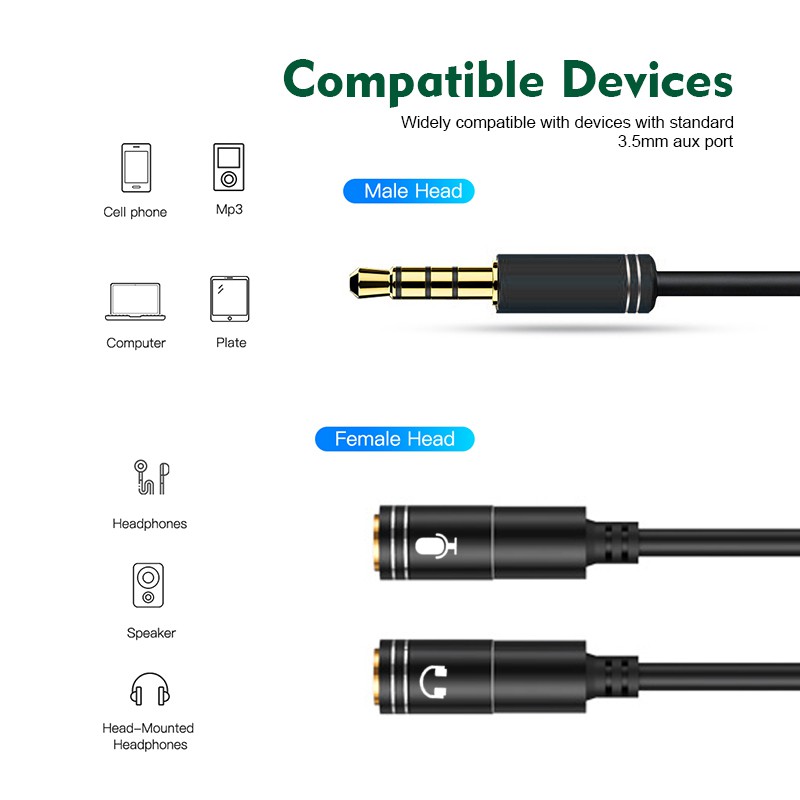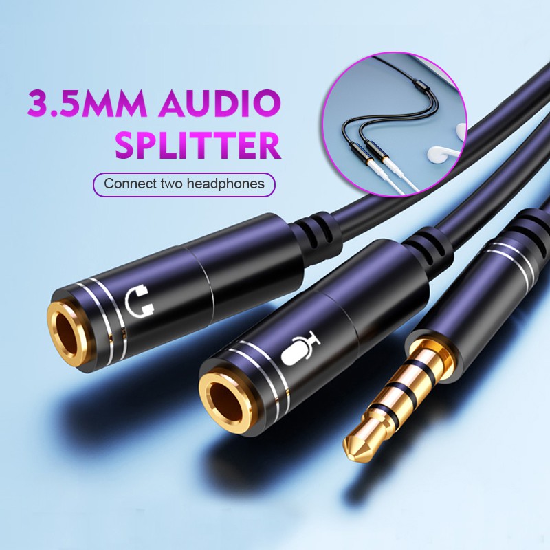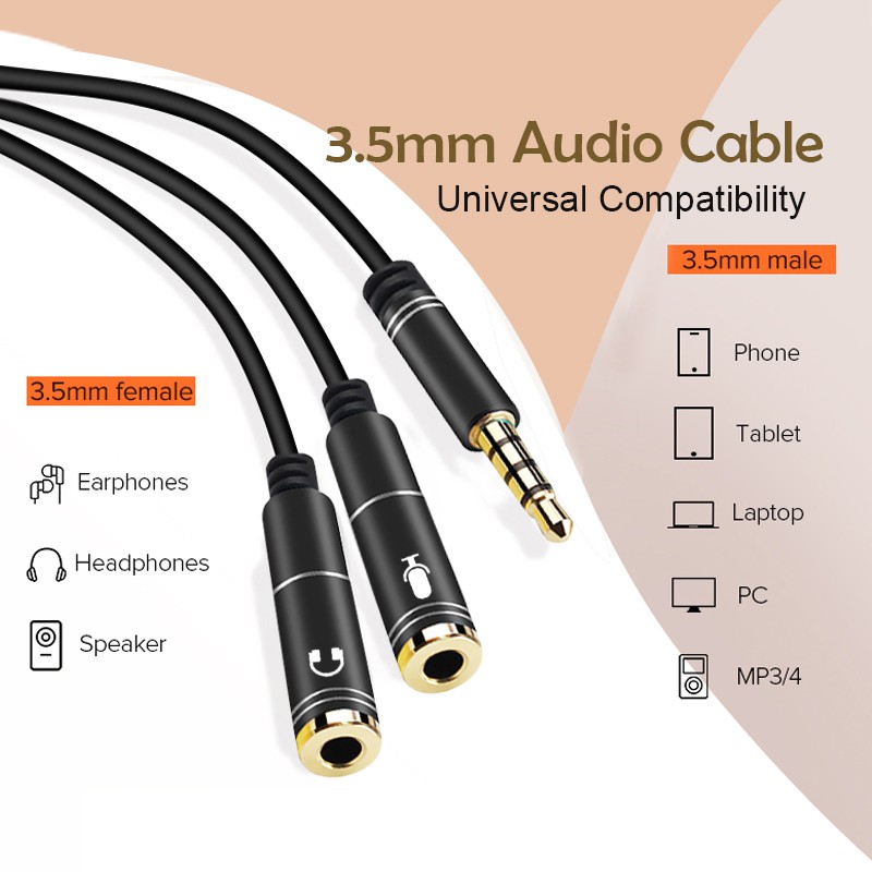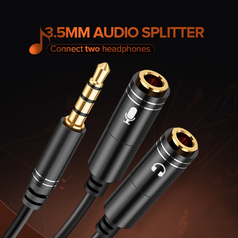3.5mm Earphone Audio Cable Micphone Y Splitter Adapter 1 Female to 2 male Connected Cord to Laptop HDTV PC MP3 CD Player