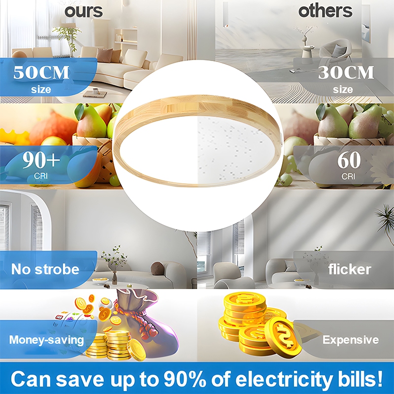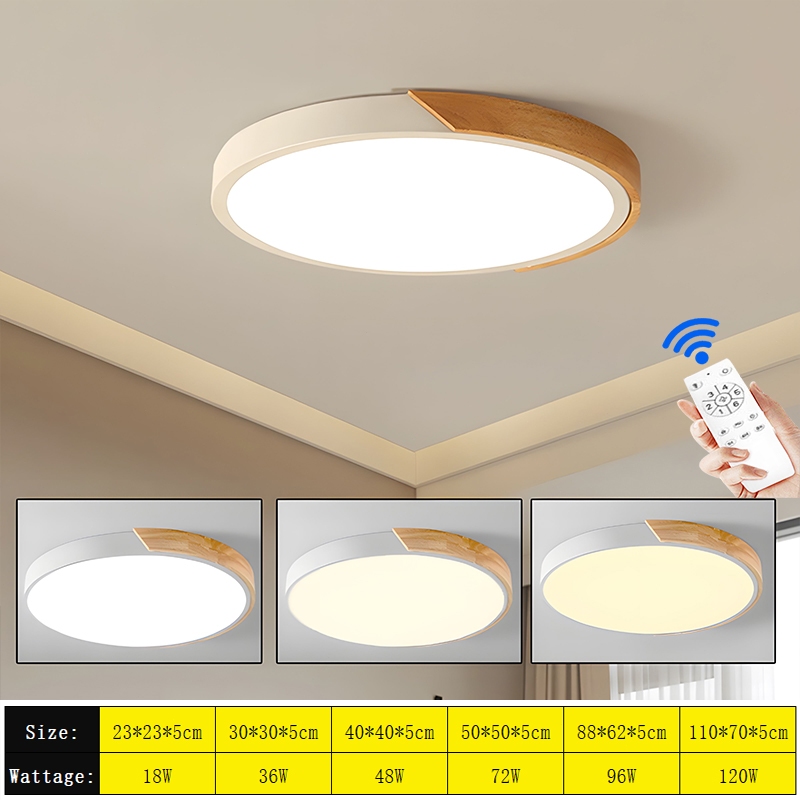 30/40/50CM Solid Wood Ceiling Light Modern Remote Dimmable Tricolor LED Ceiling Lamp Eye Protection Surface Light Lampu