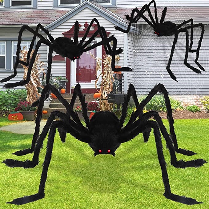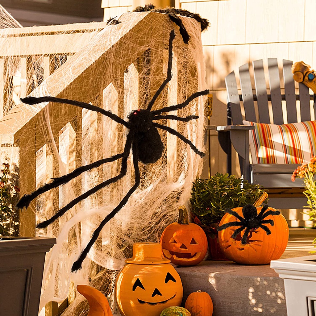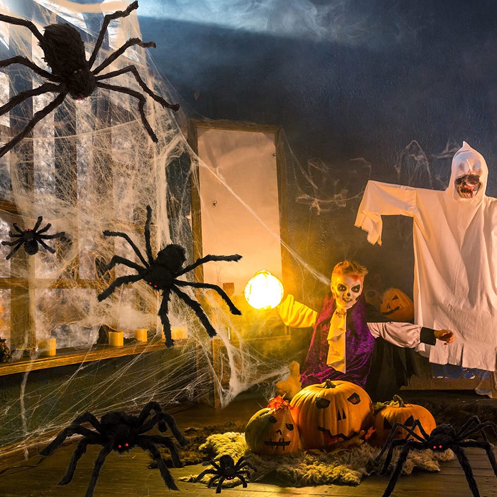 30/75/125cm Black Halloween Spider Fake Scary Hairy Spiders Sets for Halloween Decorations Realistic Halloween Spider Props Halloween Giant Spider Decorations