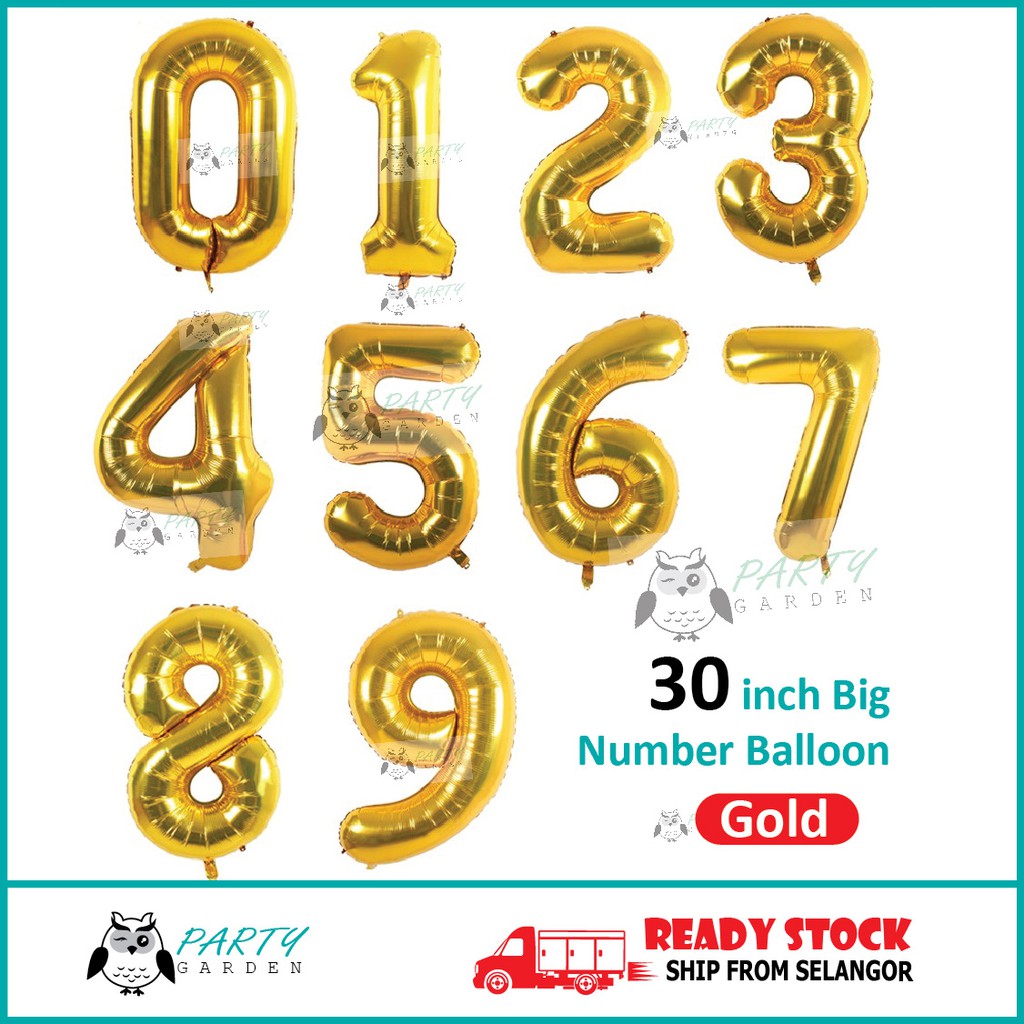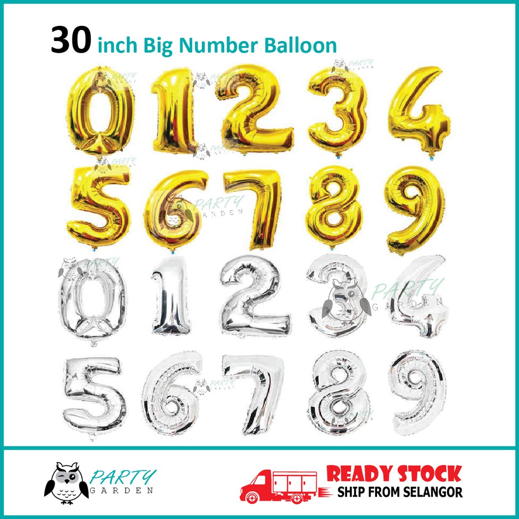 30" Gold, Silver, White, Black, Pink, Blue, Red Number Foil Balloon 30 inch numeric Happy Birthday Decoration