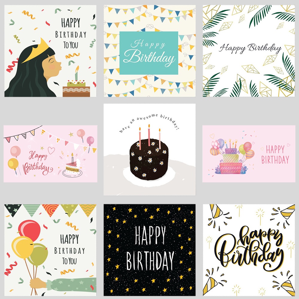 30 Pcs/Pack Square Happy Birthday Cards Pink Cake Balloons Birthday Party Gift Decor Greeting Cards Blessing Cards Custom Wishes Card