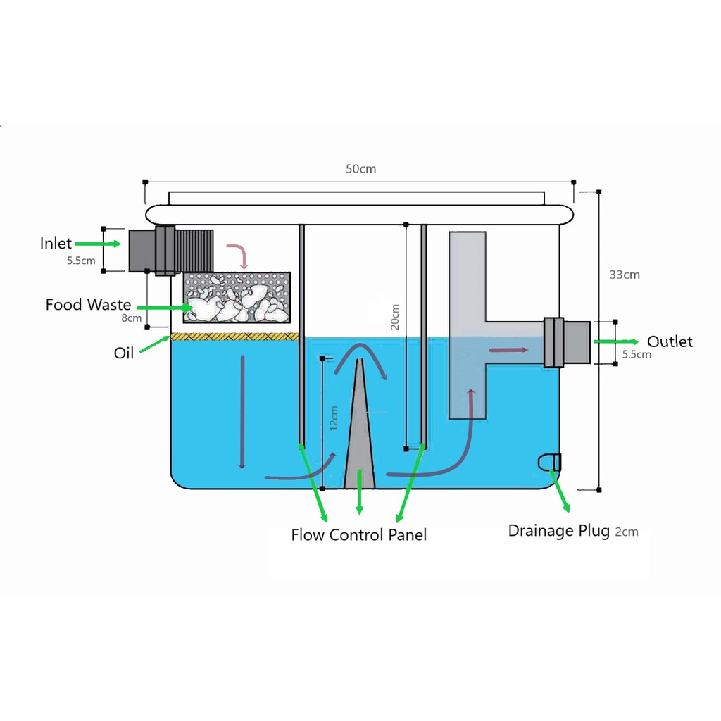 30 litre Grease Removal System Poly Grease Trap Environment Friendly Automated Drain Pipe Oil Removal For Kitchen, Sink