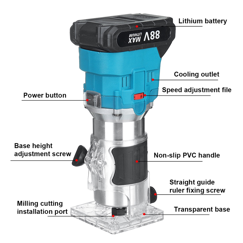 30000RPM 6 Speeds Cordless Brushless Electric Trimmer Rechargeable Wood Router Hand Trimming Machine for 18V Battery 1000W