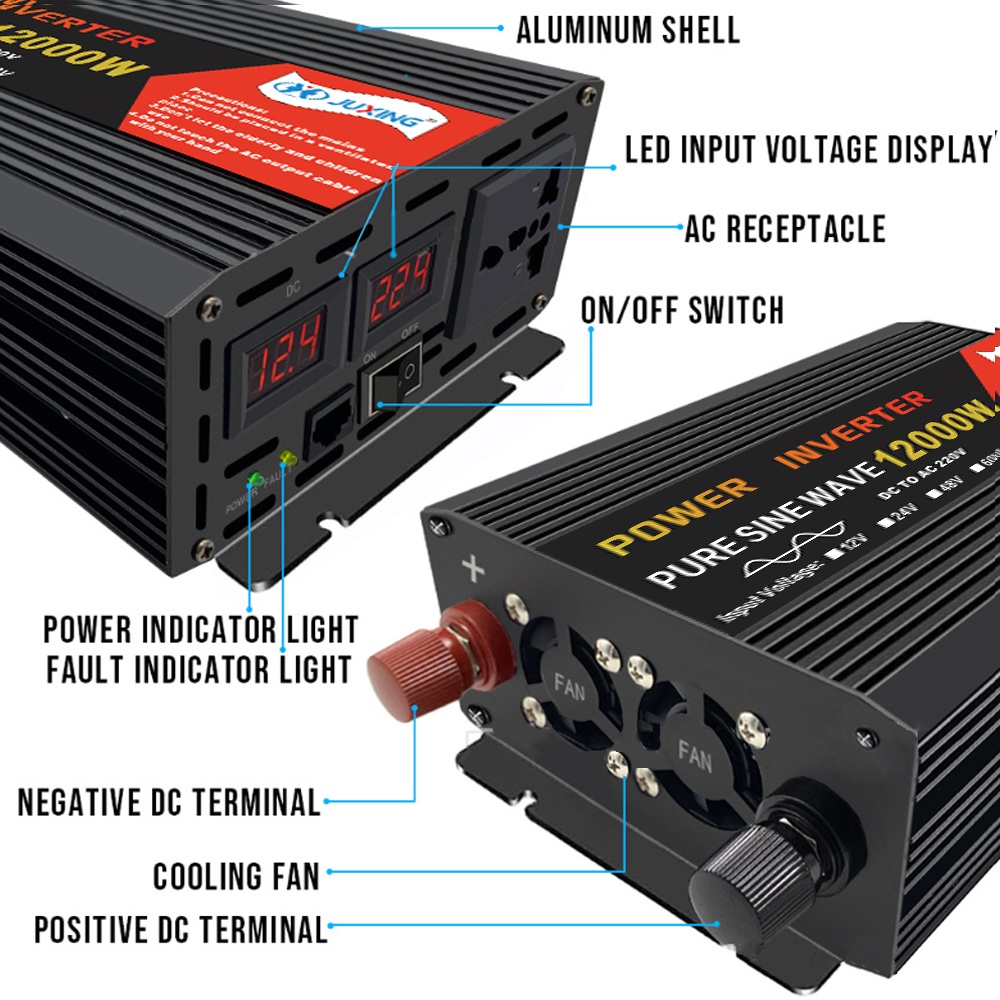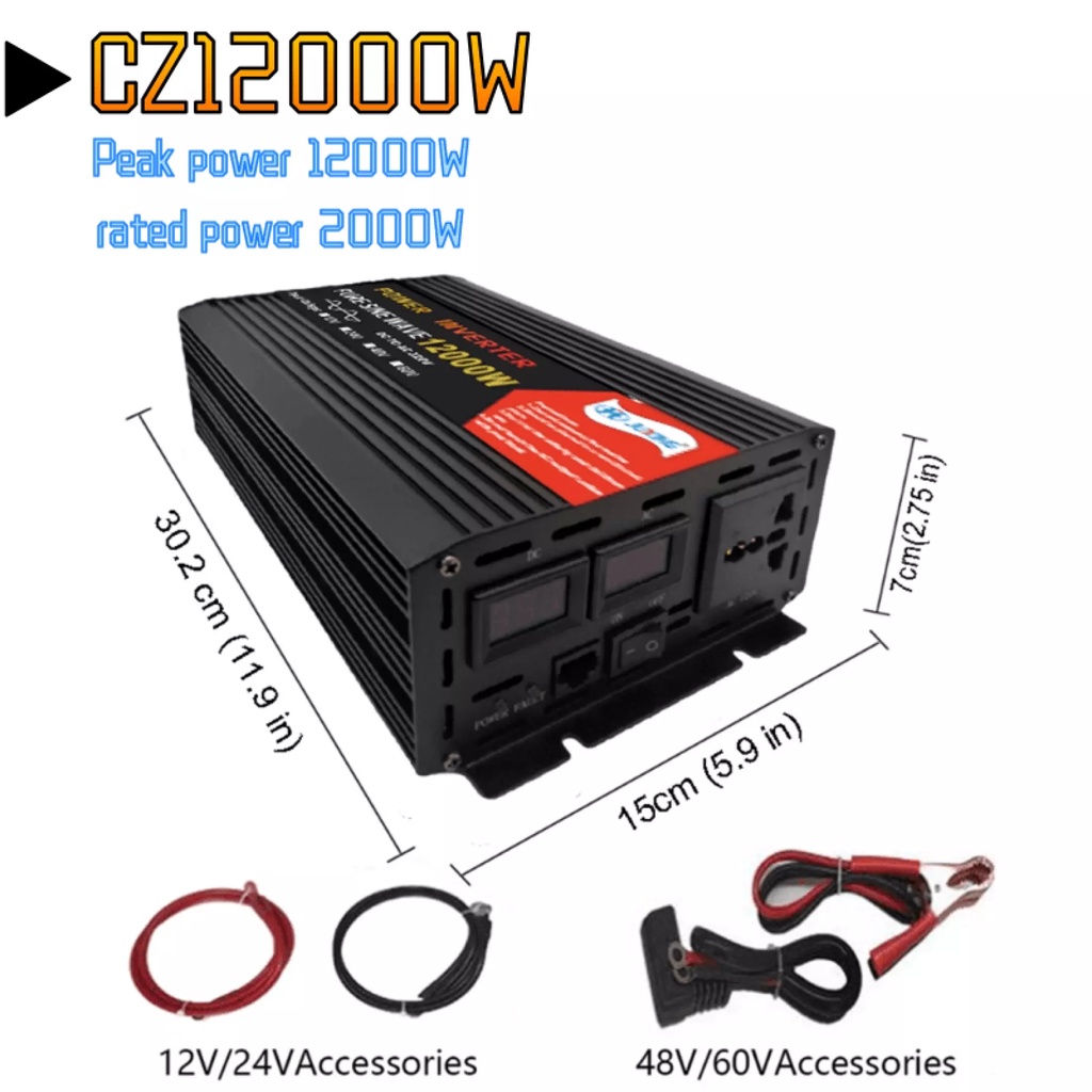 3000W-12000W Pure Sine Wave High Conversion Power Converter DC12V to AC230V With Universal AC Socket,For Family ,Car