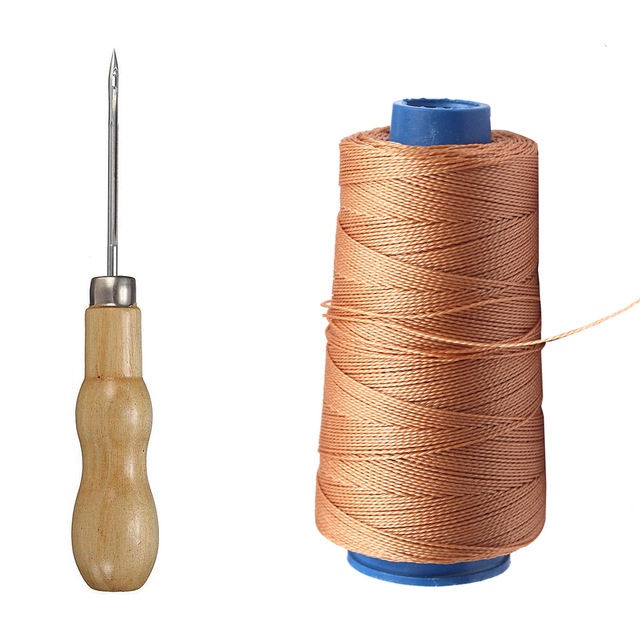 300M Nylon Sewing Thread Leather Sewing Waxed Thread & Wooden Handle Sewing Awl for Repair Shoes Hand Stitching Sewing Tools