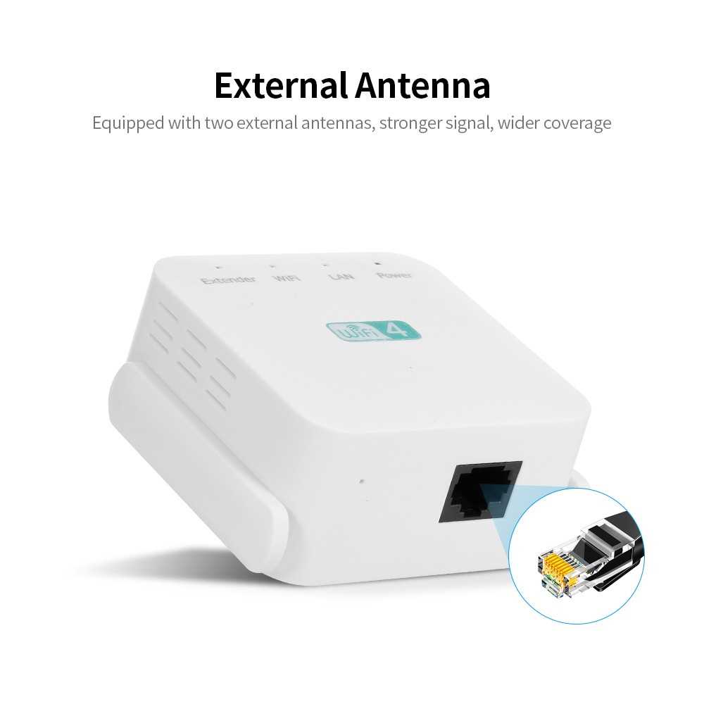 300Mbps Wireless Repeater WiFi Range Extender WiFi Signal Amplifier with Dual-antenna RJ45 Port White EU Plug (White)
