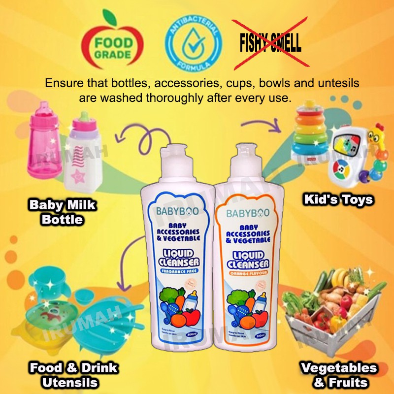 300ml BABYBOO Baby Accessories & Vegetable Fruits Liquid Cleanser Wash Pencuci Botol Susu Mainan Bayi & Sayur Murah Eco