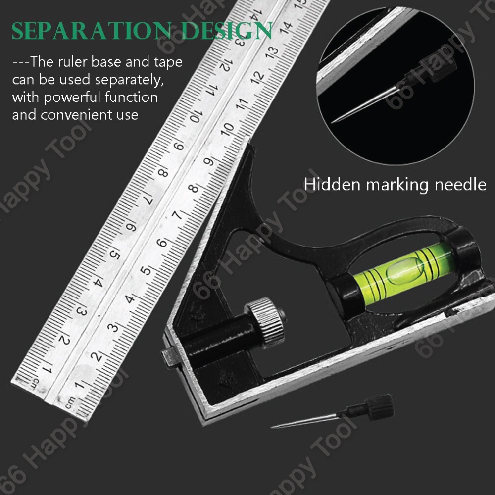 300mm Combination Angle Ruler With Bubble Level 45 / 90 Degree 12 Inch Stainless Steel Level Measurement Measuring Tool