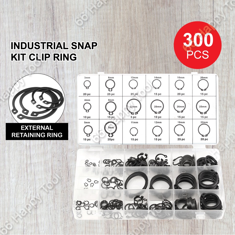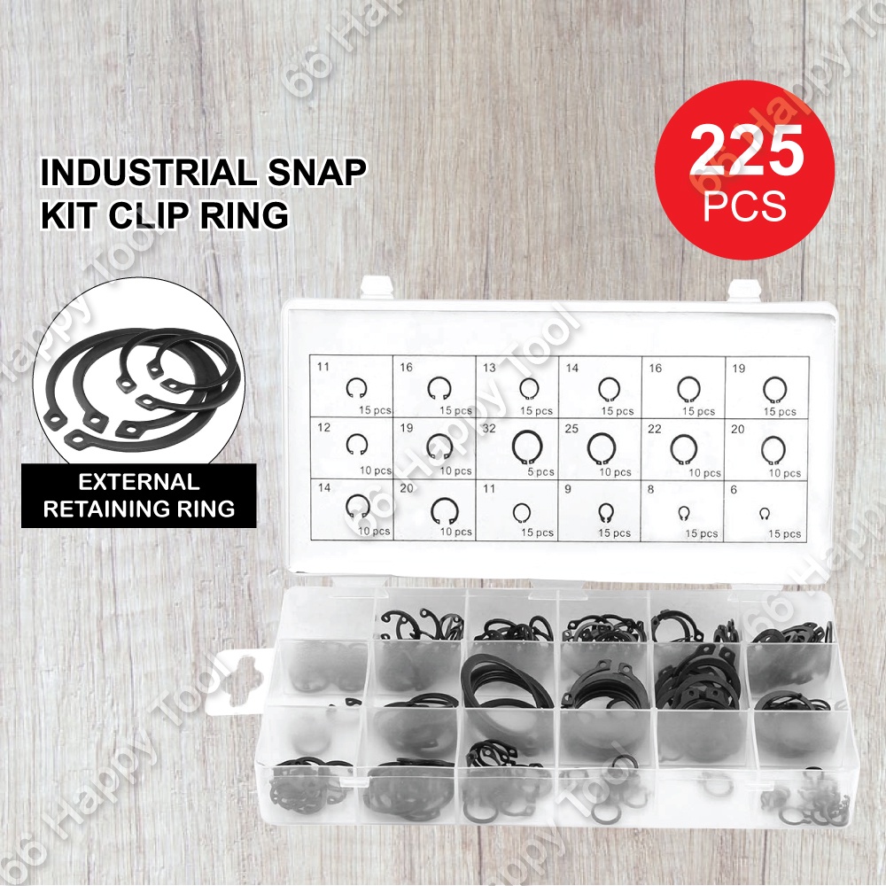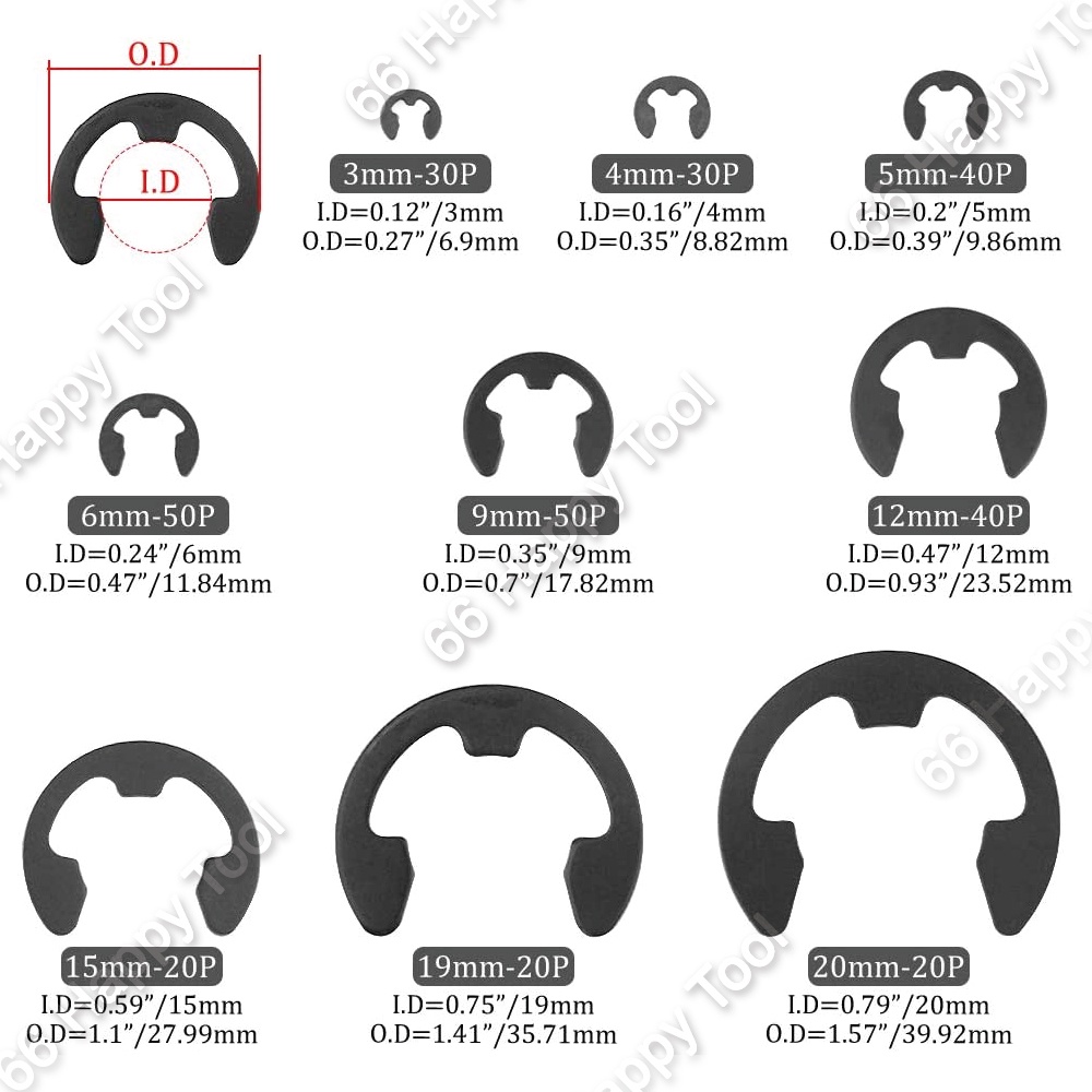 300pcs / 225pcs Carbon Spring Steel (9 Size / 18 Size) E-clip / Snap Ring Assortment Kit External Retaining Circlip Set