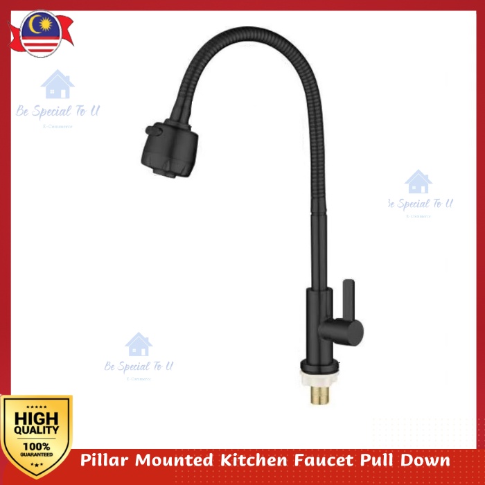 304 Double Faucet Kitchen Sink Flexible Wall Tap SUS304 Stainless Steel Tap Sink Faucet Sinki Paip ABS Handle Sinki Paip